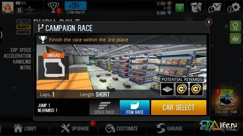 RE-VOLT 3 – серія аркадних гонок Re-Volt напевно одна з найпопулярніших на сьогоднішній день, в рамках мобільних платформ. Такий інтерес з боку гравців пояснюється досить просто, відмінна графіка, захоплюючий і динамічний геймплей, широкі ігрові можливості, по суті ось рецепт успішного аркадного проекту. Re-Volt 3 - третя частина серії, яка в цілому зберегла основні характеристики попередніх ігор, багатий вибір автомобілів, понад 50, з можливістю кастомізації і апгрейда, значний набір ігрових режимів, у тому числі мультіплєєрний, можливість створення власних зразків машин. При цьому триквел отримав більш сучасну графіку і більш реалістичний фізичний движок, а так само деяку сюжетну лінію, розділену більш ніж на 100 етапів.