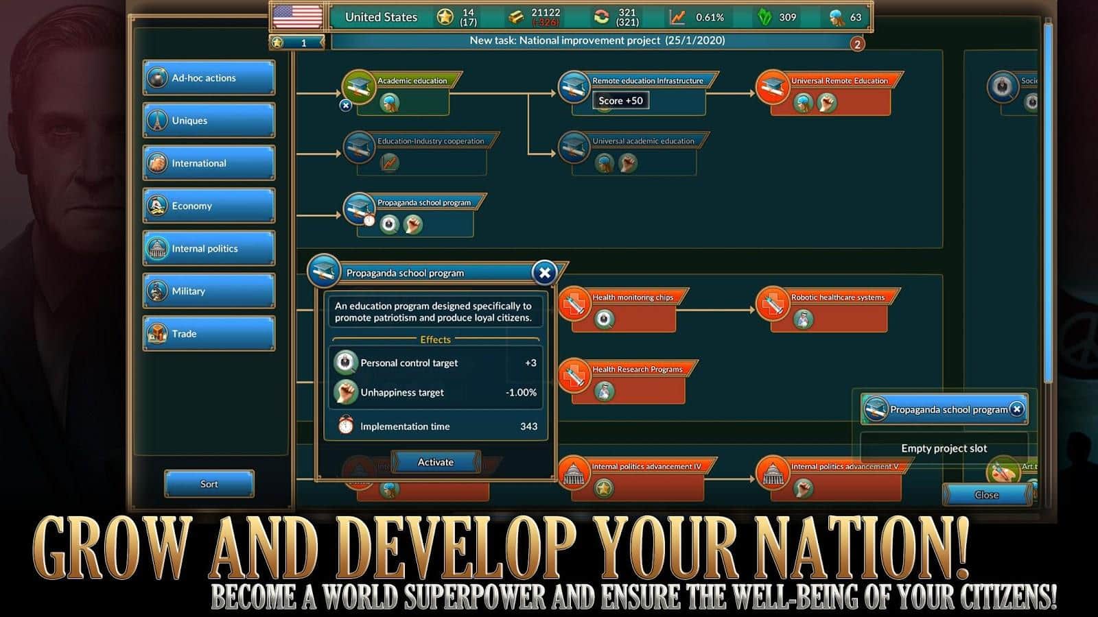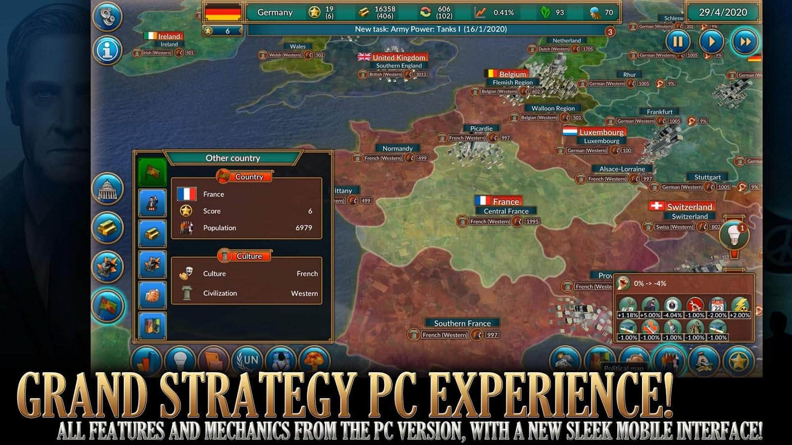 Realpolitiks - масштабна покрокова стратегія, яка спочатку вийшла на ПК і завоювала неабияку популярність як серед шанувальників жанру, так і серед гравців мріють спробувати свої сили в якості глави держави. І це не з проста адже розробники максимально детально реалізували всі деталі і нюанси як внутрішньої політики, економіки, соціальних основ, так і зовнішньої. При цьому у вас буде можливість вибору між трьома основними пристроями держави демократія, авторитаризм, тоталітаризм, в залежності від вашого вибору і буде протікати подальший розвиток. Але для початку вам необхідно отримати бажаний пост і ось тоді ви зможете керувати державою по вашому розсуду Не маловажним плюсом Realpolitiks є повна підтримка російської мови, що помітно полегшить освоєння геймплея.