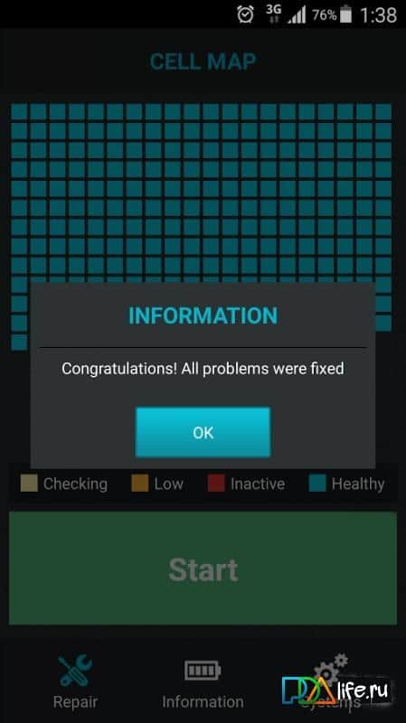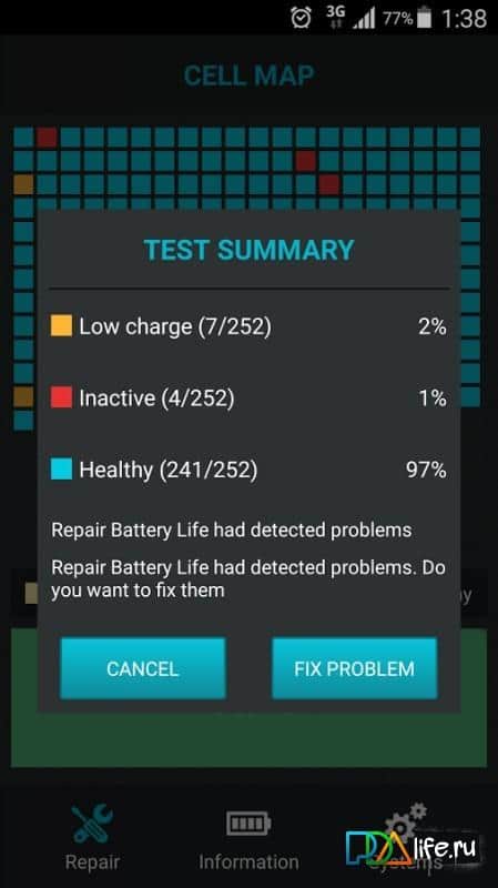 Repair Battery - Будь-яка техніка з часом зношується. Дане застосування допоможе вам зберегти вашу батарею як можна довше, живою і незмінною. У багатьох була така проблема, що батарея в один прекрасний момент починає дуже швидко розряджатися. Так ось це додаток покликане не економить вашу батарею, а перевіряти її працездатність, і підтримувати її в робочому стані. З допомогою зручного графіка, розбитого на клітинки, воно відображає робочий стан вашої батареї. А так само покаже її температуру, вольтаж і багато інших даних.
