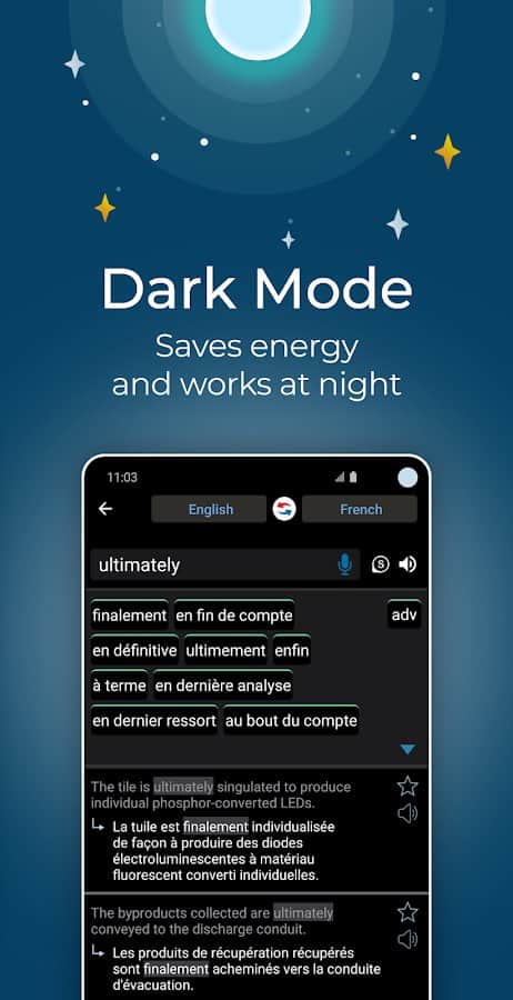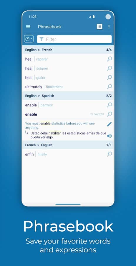 Reverso Translation Dictionary - Унікальний перекладач, який містить в собі не тільки багато слів, але так само приклади з реальних текстів, що дає можливість перекладати складні словосполучення і цілі тексти, при цьому не втрачаючи літературний зміст. Воно відмінно підійде звичайний перекладач, або ж як курс навчання мовам. Проста і досить потужна пошукова система, що дозволить вам без праці переводити будь-які тексти а так само надасть приклади використання тих або інших слів. Крім всього цього ви зможете використовувати свої власні списки слів, з прикладами для них.