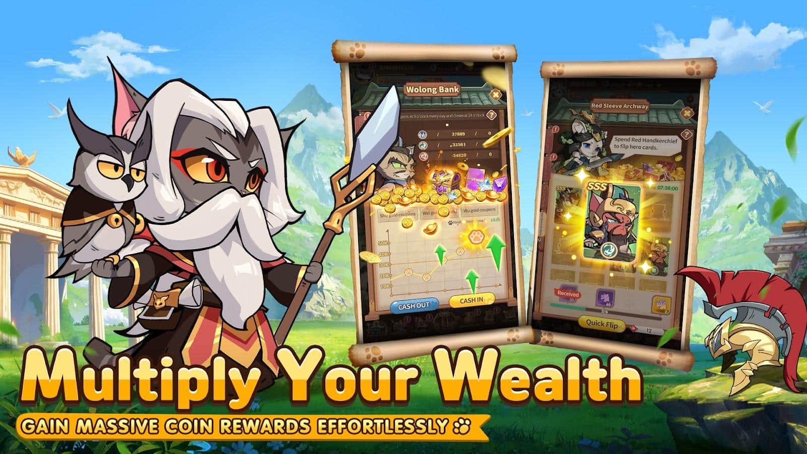 Rise of Kittens: Idle RPG — це захоплююча рольова гра, де милі котячі герої оживають в епічному світі, наповненому різноманітними цивілізаціями. Від знаменитостей до пухнастих воїнів — створюйте свою команду, щоб підкорити історію, сповнену пригод і битв. Обирайте героїв різних класів, розробляйте тактичні комбінації та адаптуйтеся до супротивників, щоб здобути перемогу. Розширюйте територію, будуйте табори та склади для доступу до цінних ресурсів. Керуйте своїми володіннями та зміцнюйте позиції.
