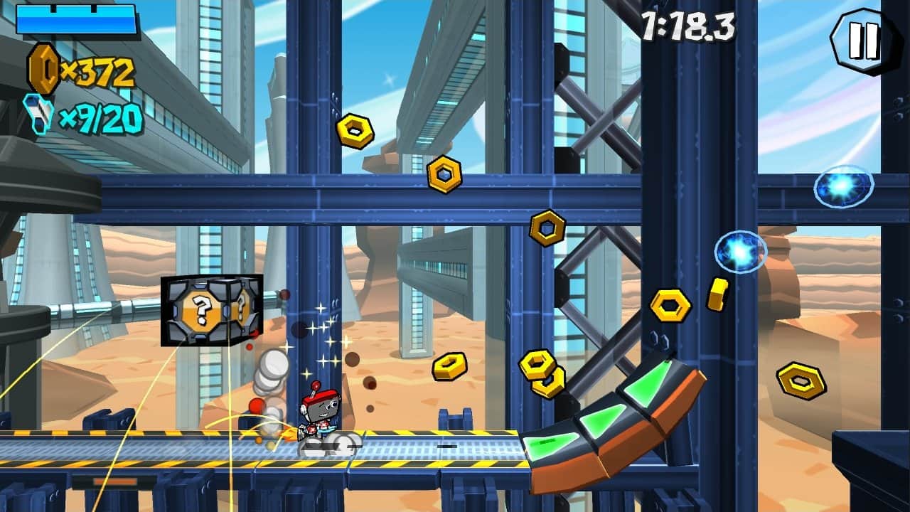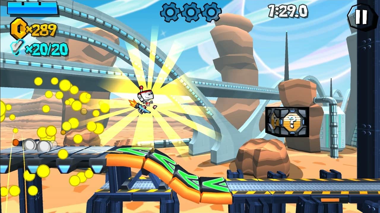 Roboto - изумительная и приятная игра на Андроид с хорошей графикой и эффектами. Вы - маленький робот Робото, который буквально недавно научился кататься на своём классном ракетборде. Но вот огорчение - ваша любимая робото-девушка улетела на другую планету. Значит теперь вы должны добраться до космического корабля, на котором полетите за ней в соседнюю галактику. И путь ваш будет не легким, помехой станут другие роботы, и большие и маленькие. Надейтесь на везение и вы найдете какой-нибудь бонус в виде монет или апгрейда.