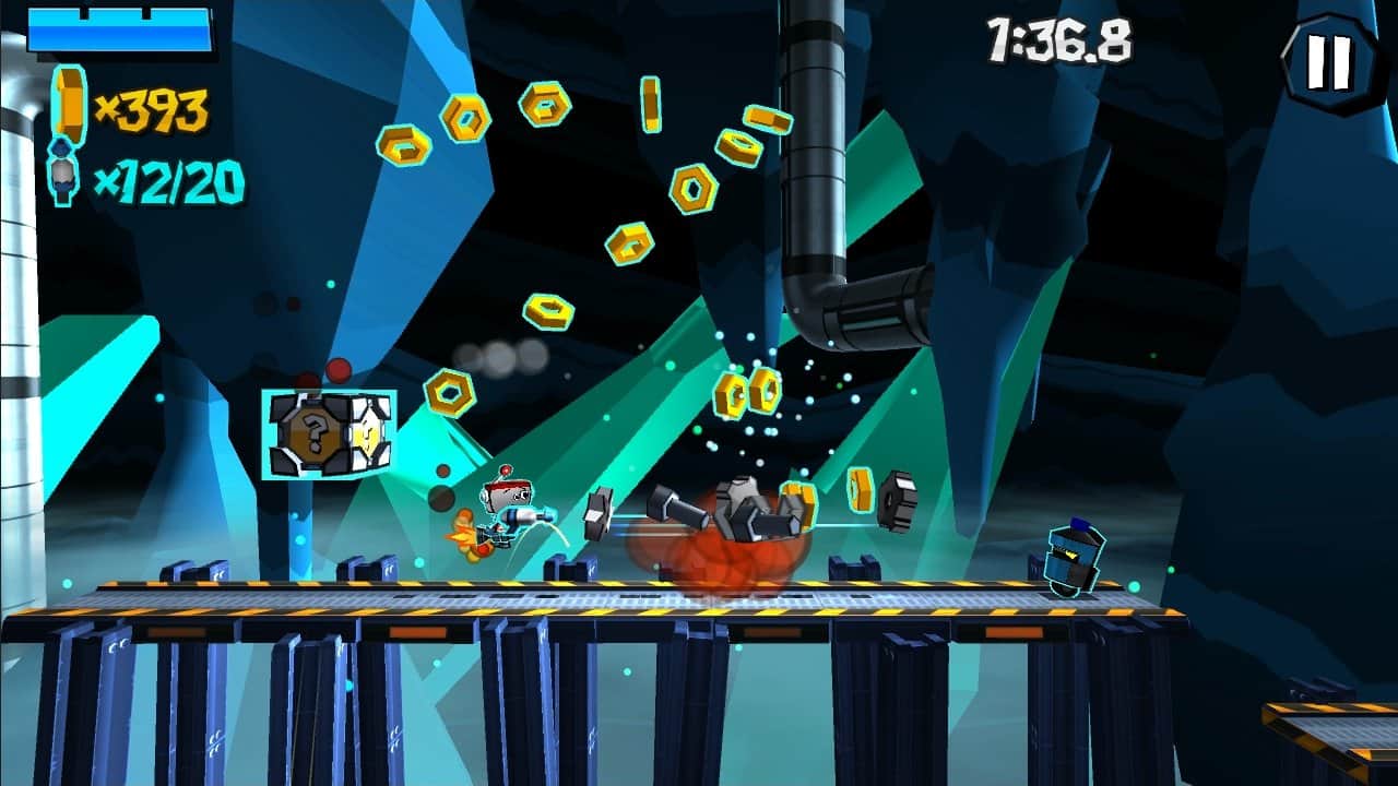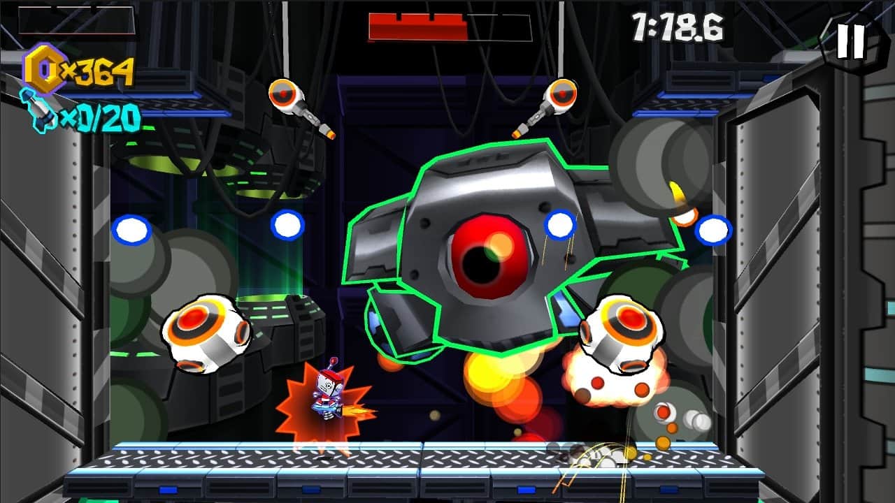 Управление с помощью клавиш: джойстик, для поворотов влево-вправо, и две клавиши - огонь и прыжок. Играя за этого обаятельного робота, вы почти никогда не упадете вниз. Его мини-турболет всегда вас подхватит и поднимет! Когда все же пройдете все 30 уровней, то сразитесь с мега-боссом! И тогда вам откроются увлекательные мини-игры.