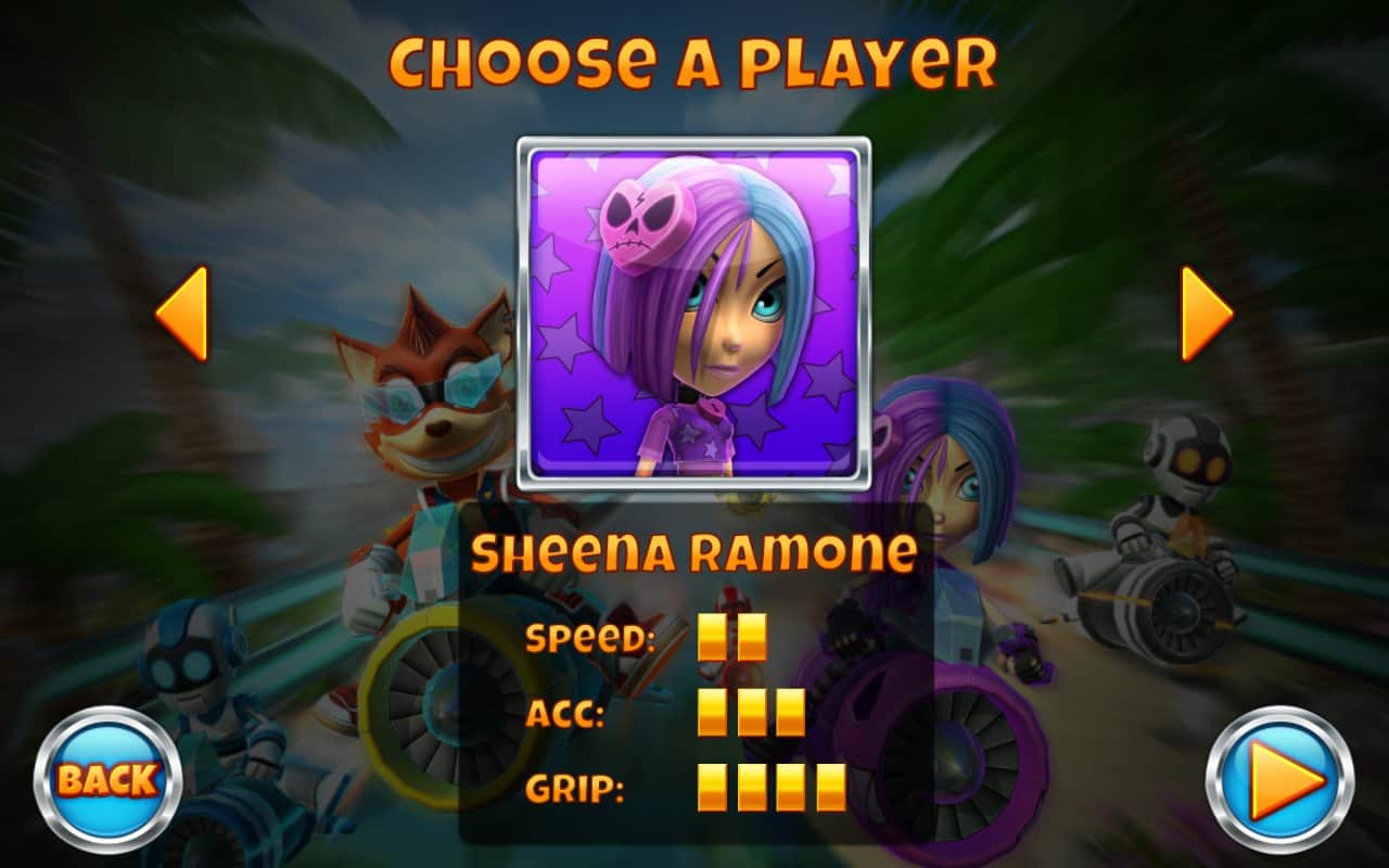 Rocket Racer – божевільні ракети, шалені швидкості і адреналіновий драйв чекає свого гравця. Фантастичні яскраві рівні, цікаві персонажі, карколомні траси з різними перешкодами чекають свого пілота. Виберіть свій характер між Fox Rock і Шина Вперед і вперед до нових перемог. Використовувати прискорювачі, різне озброєння та спеціальні предмети, для досягнення своєї мети.