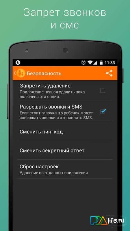 В налаштуваннях ви зможете виставити заборона на видалення програми, пін-код виходу з програми і інші параметри, які допоможуть убезпечити ваше чадо і його смартфон.