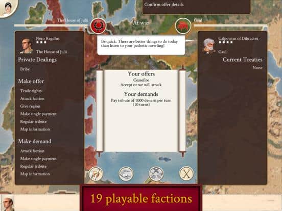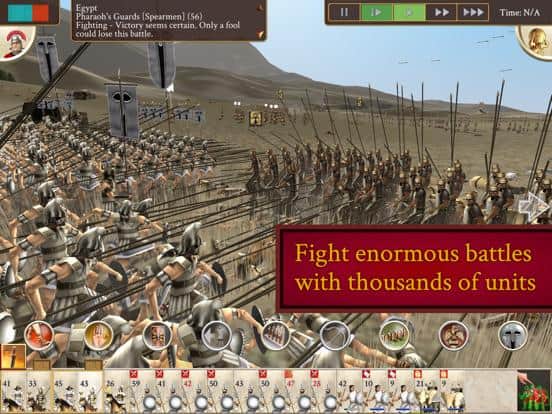 ROME: Total War - так, Так ви не помилилися, це та сама гра в яку багато хто з нас могли записувати цілі години безперервно. Грайте в класичну стратегію оптимізовану під iPad, і насолоджуйтеся великими баталіями, захоплюйте міста, знищуйте своїх ворогів. Створіть свою власну імперію, вознесите її, і станьте легендарним правителем. Управління в грі досить просте, і ви зможете легко управлятися з усіма загонами одночасно. Управляйте величезними військами в багатотисячних битвах, а так само всією імперією в цілому на карті світу.