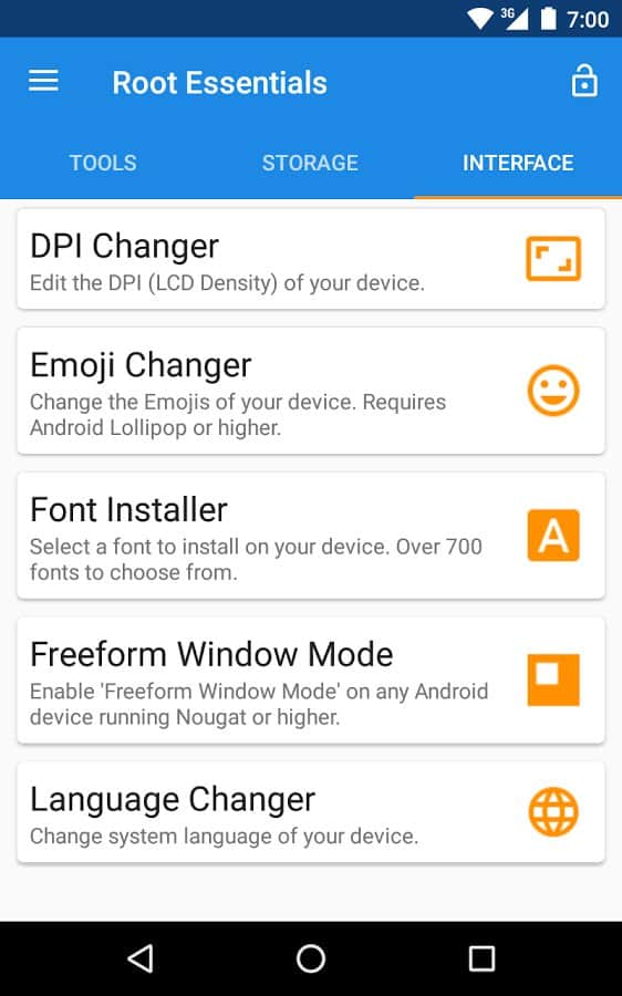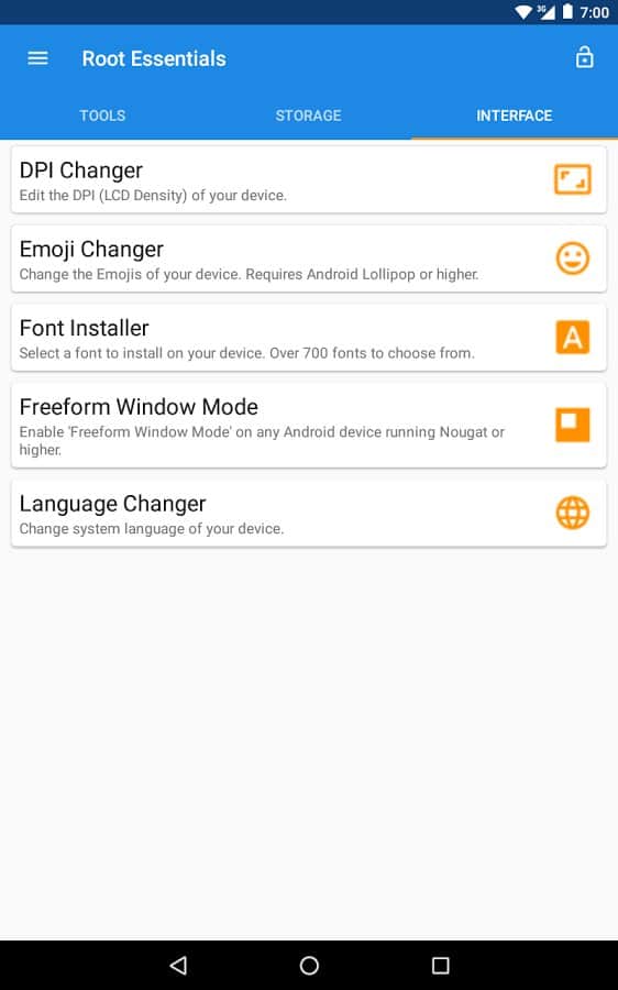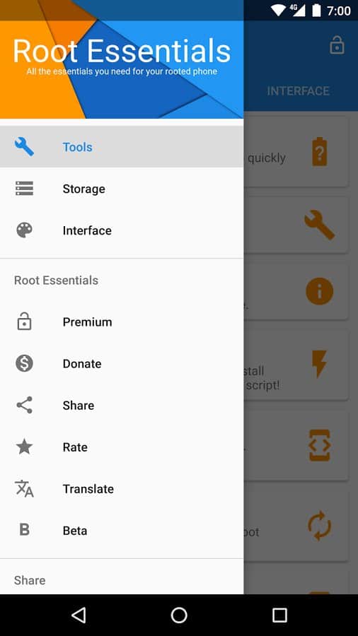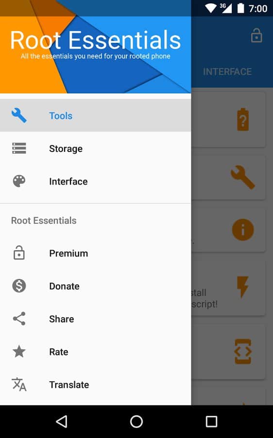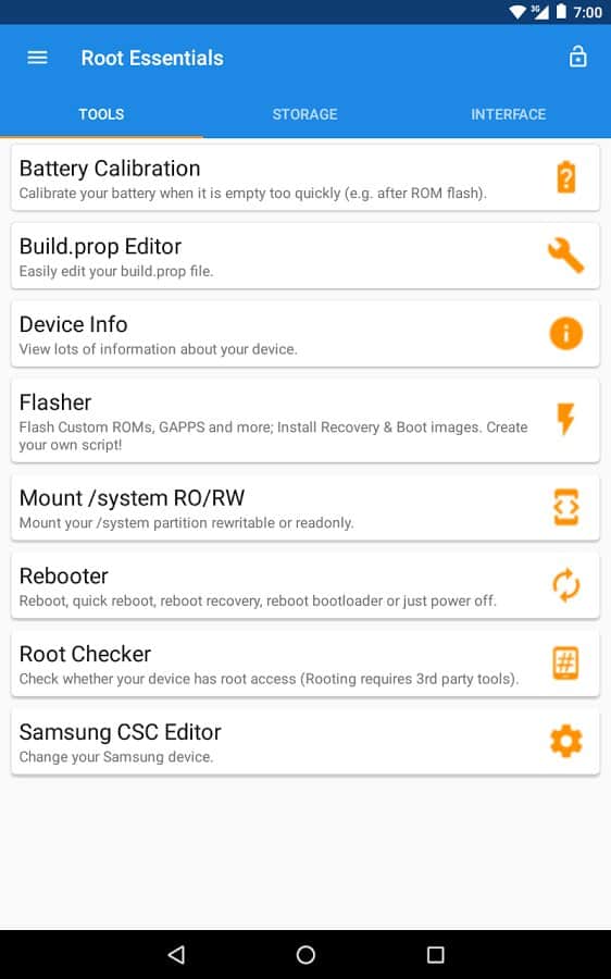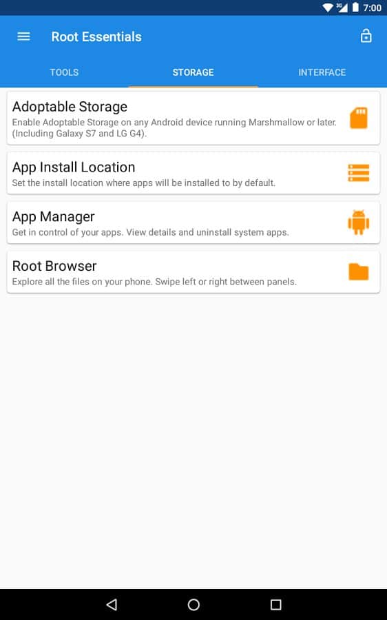Root Essentials - Унікальний набір додатків для пристроїв з root доступом. Що варто відзначити, так це те, що тут зібрано все найнеобхідніше, і воно настільки зручно реалізовано, що мимоволі замислюєшся який сенс тримати в себе кілька додатків, якщо є це. Тут ви зможете отримати доступ до найбільш сокровенних файлів і папок на вашому смартфоні, і навіть визначити місце установки ваших апк файлів. Це дуже корисно для тих у кого своїй пам'яті в смартфоні дуже мало.