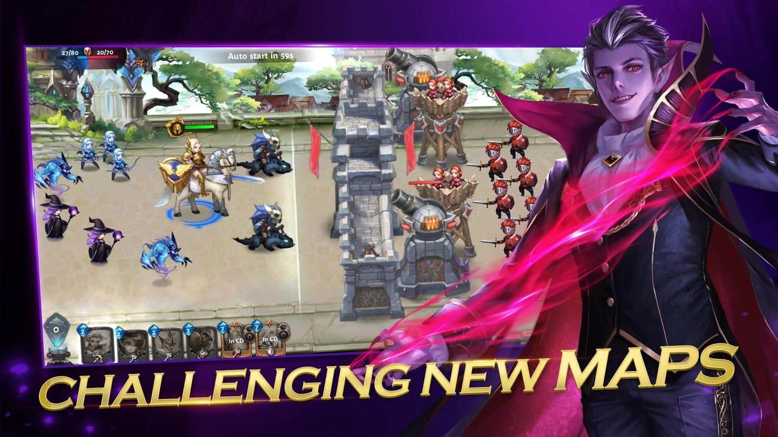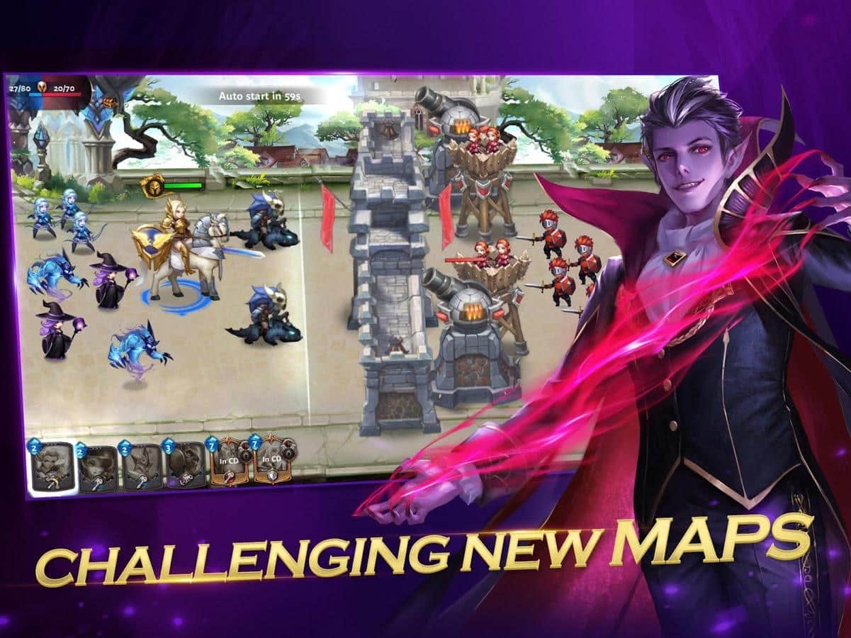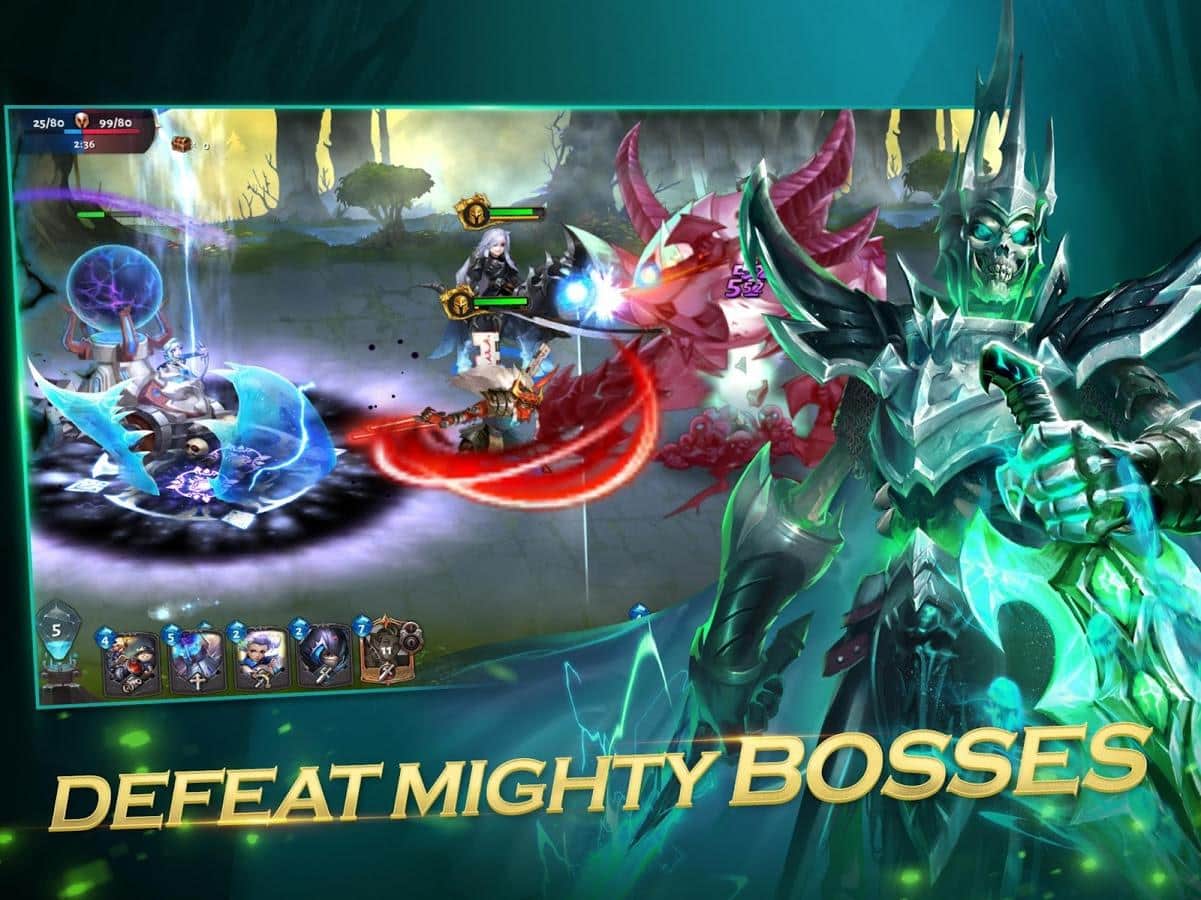 Royal Legends: 1v1 Real-time Strategy Battle Arena - проста і забавна стратегія в якій ви будете боротися з опонентом на іншому кінці карти. Завдання тут дуже проста, все що вам потрібно це знищити базу супротивника і при цьому не втратити свою власну. Що б атакувати ворога використовуйте спеціальних бойових юнітів а так само героїв що послужать відмінним авангардом вашої армії. Однак пам'ятайте що б викликати бойових юнітів потрібно добувати кристали а для цього вам необхідні спеціальні робочі. Максимально збалансуйте свої бойові одиниці або ж використовувати їх у залежності від ситуації.