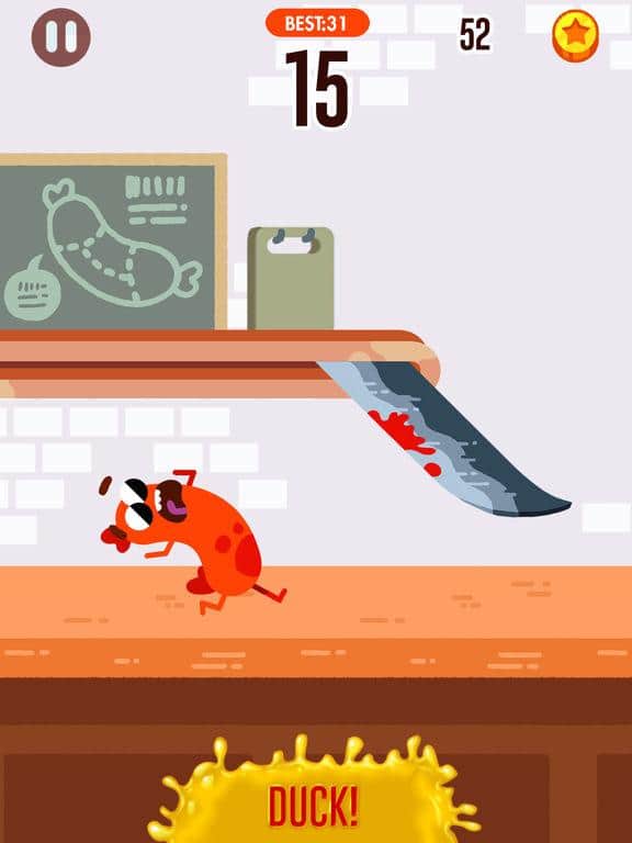 Run Sausage Run! – весела гра для IOS, де ви будете допомагати сосисці, покинути кухню. За нашою героїнею то і справа буде гнатися кухар для того щоб приготувати її і зробити з неї хот-доги. Біжіть вперед і ухиляється від різних перешкод і перепон, що встали у вас на шляху у вигляді гострого ножа, молотка, скалки і інших небезпечних кухонного приладдя. По дорозі не забувайте збирати численні монетки і бонуси, які дозволять вам отримати додаткові можливості. Одягайте свою сосиску в різні наряди і зробіть свій ігровий процес. Грайте в цю гру і отримуйте максимум задоволення від відмінного гумору, барвистою графіки і простого управління.