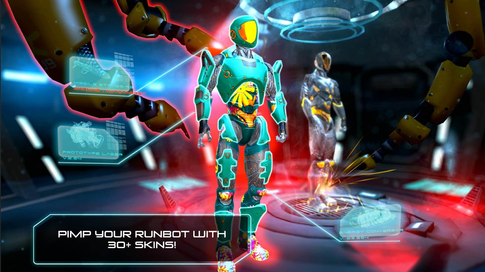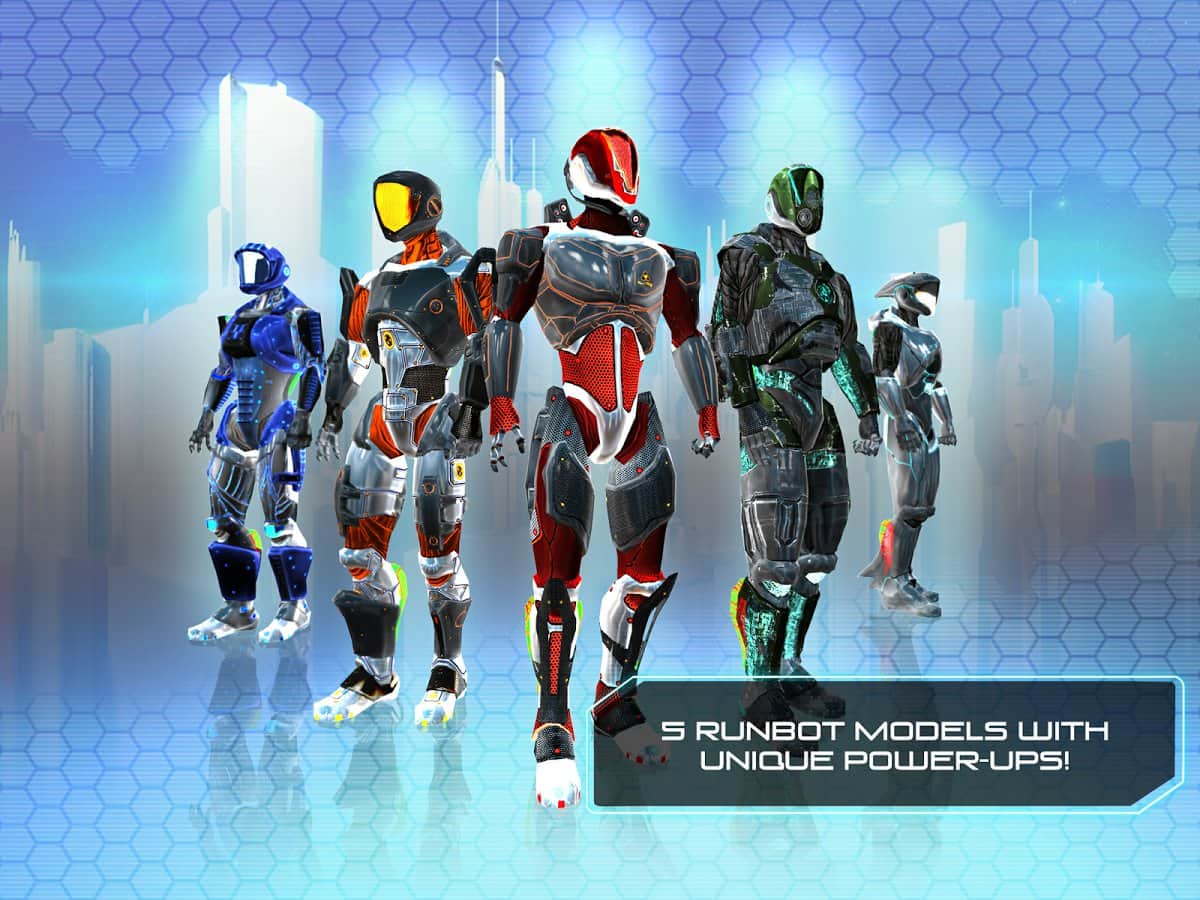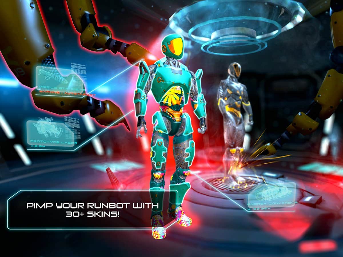 RunBot - далёкое будущее в котором роботы правят миром. Убегаем роботом, стараемся обойти все препятствия. В игре отличная графика, прорисовка уровней на высоте, анимация героя и местности также на высоком уровне. В игре мы будем не только бегать но также парить в антигравитационных уровнях и находится в свободном падении при этом обходить различные препятствий, а в игре их довольно много. Мины, боевые пушки, магнитные поля, электрические разряды и другие опасности ждут вас на своём пути.