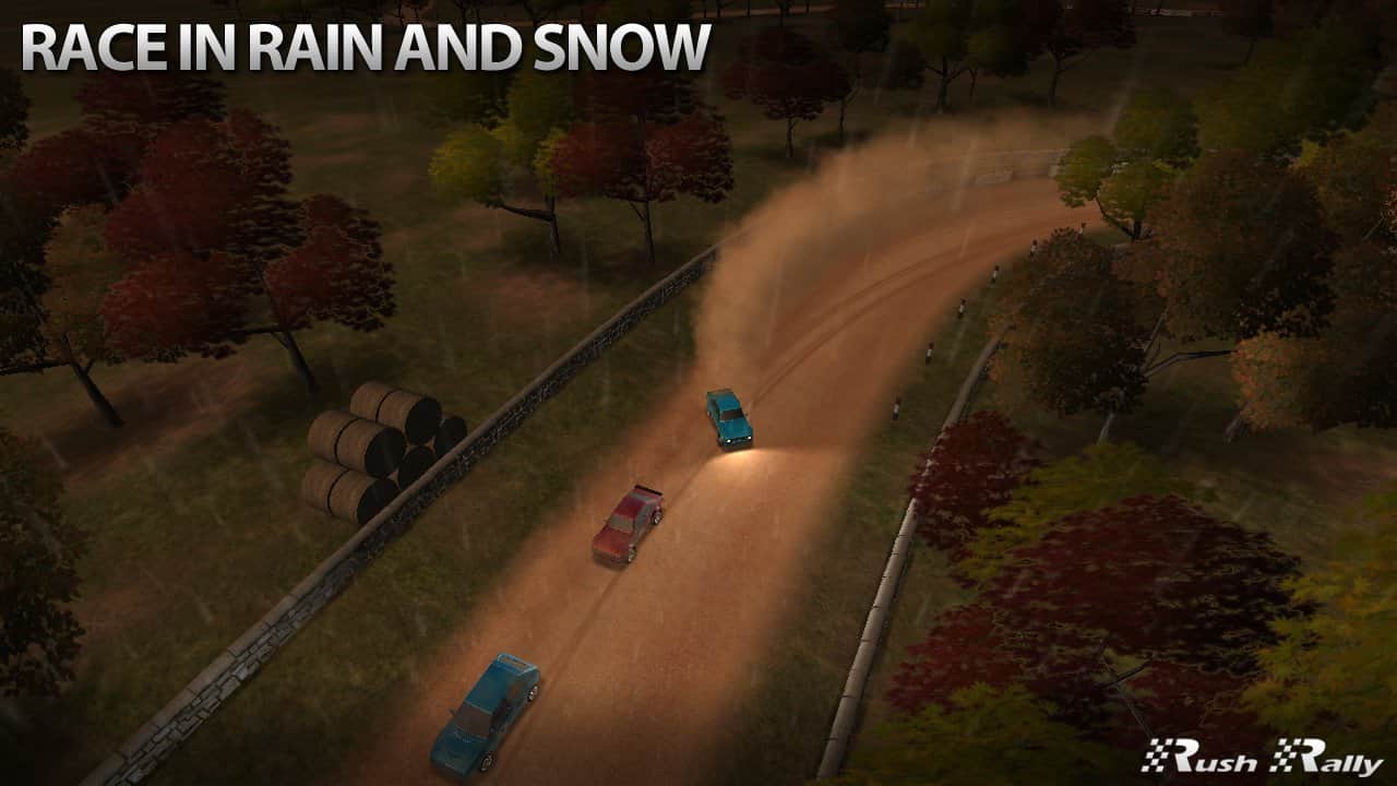 Rush Rally - отличные раллийные гонки с превосходной физикой движения вашего автомобиля. Неситесь на больших скоростях, поднимайте клубы пыли или снега. Гонки могут проходить в разных погодных условиях, а также в разное время суток. Вас ждёт 36 уникальных трассы, многие их них имеют своё покрытие: гравий, песок, снег и асфальт. К каждому покрытию нужно подобрать своё оптимальное управление. В игре 4 вида сложности, выбирайте тот, который вам по силам и вперёд получать новые порции адреналина.