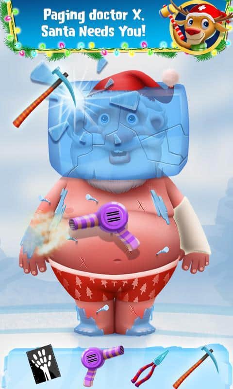 Santa Rescue Challenge - Doc X - Этим рождеством, Операция "Спасти Санту"! Проверь свои навыки, принимая участие в лучшем экстремальном приключении года. Позаботься о Санте и его помощниках. Приготовься к испытанию "Подарочной" фабрики. Начать вам придётся в доме Санты, где вы найдёте его больным, неспособным даже забраться на сани. Ухаживайте за Сантой используя различные штучки, такие как ледорубы, насосы или фены. Санте так же понадобится и другая помощь, так что скучать не придётся.