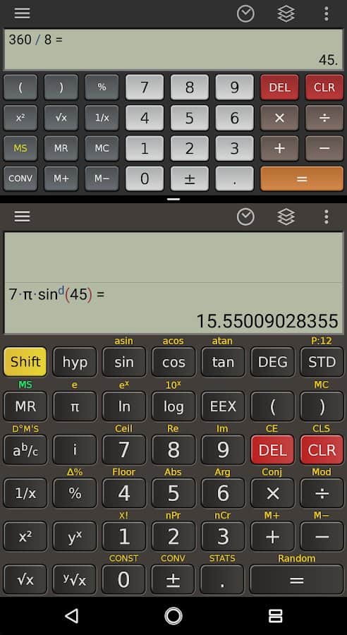 Калькулятори - програми, які досить широко представлені на мобільних платформах, однак більша їх частина дозволяє скористатися лише мінімальним набором функцій. Але є і куди більш серйозні представники наприклад Scientific Calculator Plus, це повнофункціональний калькулятор який дозволяє проводити обчислення з дробами, комплексними числами, фізичними константами. Крім цього в додаток інтегровано ряд корисних функцій, наприклад конвертер одиниць, кілька слотів пам'яті, повноцінна інструкція, онлайн можливості, настроювання стилю калькулятора, а так само цілий ряд функцій характерних для цифрових калькуляторів з ПК.