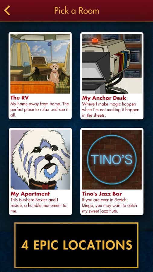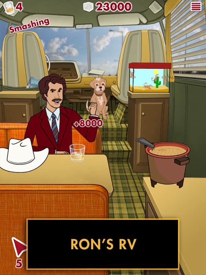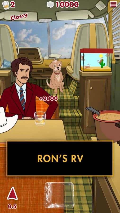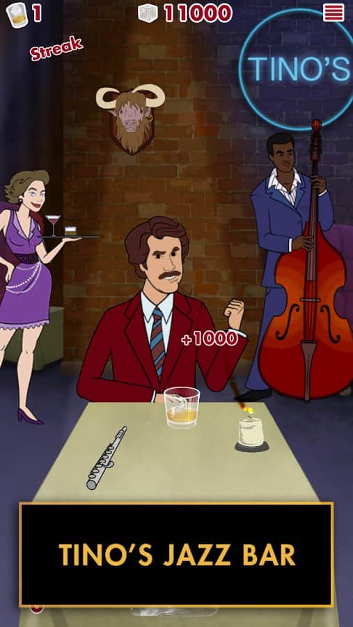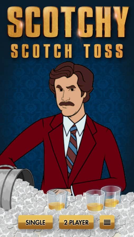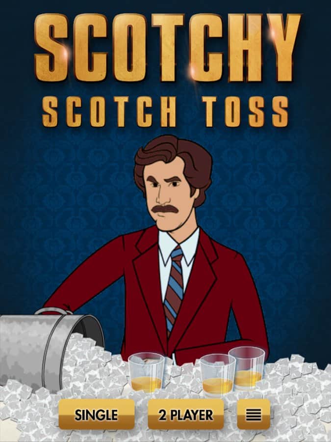 Scotchy Scotch Toss - игра на аndroid, в которой вы будете слушать рассказы легендарного ведущего Рона Бургундии. Но чтобы он начал говорить вам необходимо попасть в его стакан со скотчем кубиком льда. С каждым удачным попаданием вы будет зарабатывать баллы.