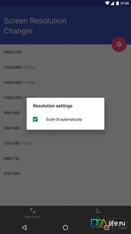 Screen Resolution Changer (Unreleased) - Це додаток для любителів екстремальної економії, його суть полягає в тому, що б зменшити дозвіл екрана до мінімуму, тим самим зменшити загальну навантаження на ваш смартфон. Однак будьте уважні, не варто лізти туди, де ви нічого не розумієте, до того ж програма вимагає наявності рут прав, так що перед його використанням обов'язково отримаєте їх. Так само, не варто міняти дозвіл дуже часто, або багато разів підряд, оскільки це може негативно позначитися на вашому пристрої.