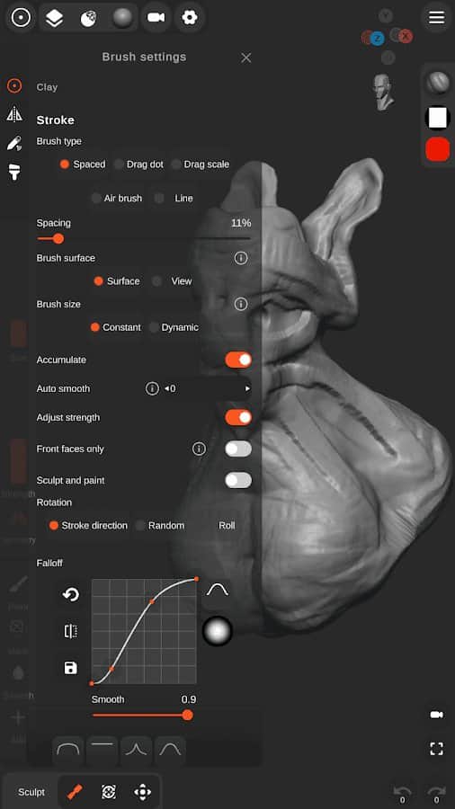 Sculpt+ - це винятковий цифровий додаток, який відкриває перед вами світ скульптури та малювання на вашому смартфоні або планшеті. Особливості: - Багато скульптурних пензлів, включаючи стандартний, глиняний, нарощування глини, згладжування та багато інших. - Створення користувацьких пензлів VDM. - Налаштування обводки та малювання вершин. - Різноманітні примітиви та базові голови для ліпки мешів. - Можливість підрозділу та повторного створення сітки, а також робота з вокселями та їх перестворення. - PBR-рендеринг та різні типи освітлення. - Імпорт файлів OBJ, користувацьких текстур та HDRI-текстур для PBR-рендерингу. - Зручний інтерфейс, адаптований для пристроїв з сенсорним екраном, з підтримкою стилуса та безперервним автозбереженням. - Поділіться своїми творіннями зі світом, експортуючи їх у форматах OBJ, STL, GLB, PNG або GIF.