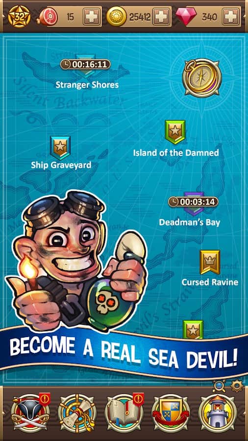 Sea Devils - Pirate Adventure - покрокова рольова гра, яка поєднує в собі елементи декількох ігрових напрямків, таких як екшн, пригоди, економічна стратегія і містобудівний симулятор. І так, події гри розгортаються на просторах Карибського басейну, в часи коли ці води були сповнені піратів. Вам належить зібрати під своїми прапорами відчайдушну команду бравих вояків і спробувати стати самим відомим капітаном цих широт. Крім захоплюючих тактичних битв в покроковому стилі вам належить знайти підходящий острів і збудувати базу, яка і стане ваші оплотом.