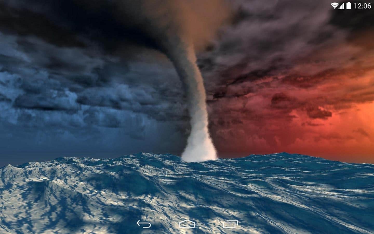 Sea Storm 3D LWP – відмінні живі шпалери на андроїд, які перенесуть вас в епіцентр величезного торнадо. Встановивши ці шпалери у свій телефон, ви будете спостерігати розвиток потужного торнадо, який утворюється над водною поверхнею. Ці шпалери надовго привернуть вашу увагу до себе, адже ви зможете спостерігати тривимірну картинку наближення торнадо. Спостерігайте за пінливим океаном, красивими хмарами і грізними хмарами, які будуть проноситися над вашою головою. Перенесіться прямо в центрі циклону і насолоджуйтеся мінливою погодою і неймовірними природними явищами. Установка шпалер не займе у вас багато часу.