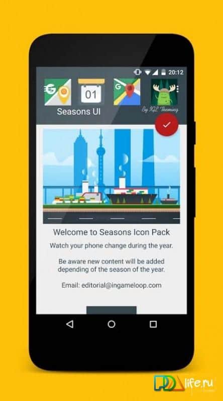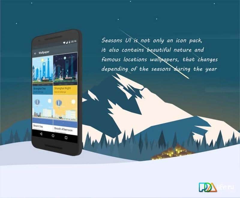 Seasons UI - Унікальний набір іконок, на всі сезони. Тут ви знайдете те, що вам по душі. Міняйте тематику свого робочого столу, разом з порою року. Якщо вам набридне зима, зробіть для себе літо. Додаток дуже простий, але має в собі безліч різних іконок, найкращої якості. Встановлюйте, і переконуйтеся самі. Так само, ви зможете не тільки вибрати, з вже існуючих комплектів іконок, але і створити свій власний комплект іконок, в який можна додати все що хочете, з різних наборів. Це додаток підтримується на всіх нових лаунчер, що так само робить його унікальним.