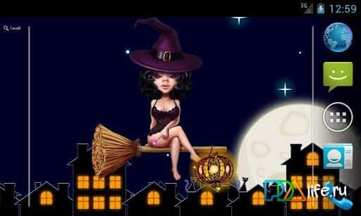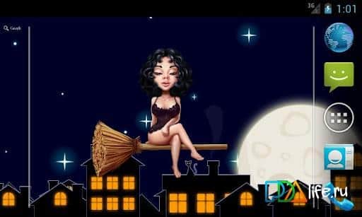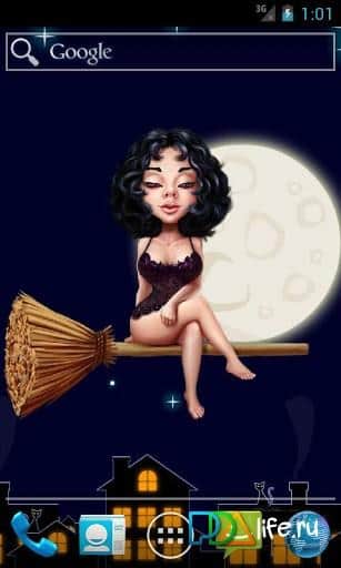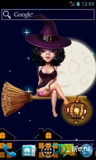 Sexy Halloween Witch-живі шпалери на Андроїд з симпатичною молодий відьмочкою, що летить в нічному небі над містом на тлі повного місяця! Скачайте і встановіть на екран вашого смартфона шпалери для Хеллоуїна кращого свята серед нечистої сили. Насолоджуйтесь нічним польотом молодої Валькірії, змінюючи їй наряд при повному місяці і ясному небі!