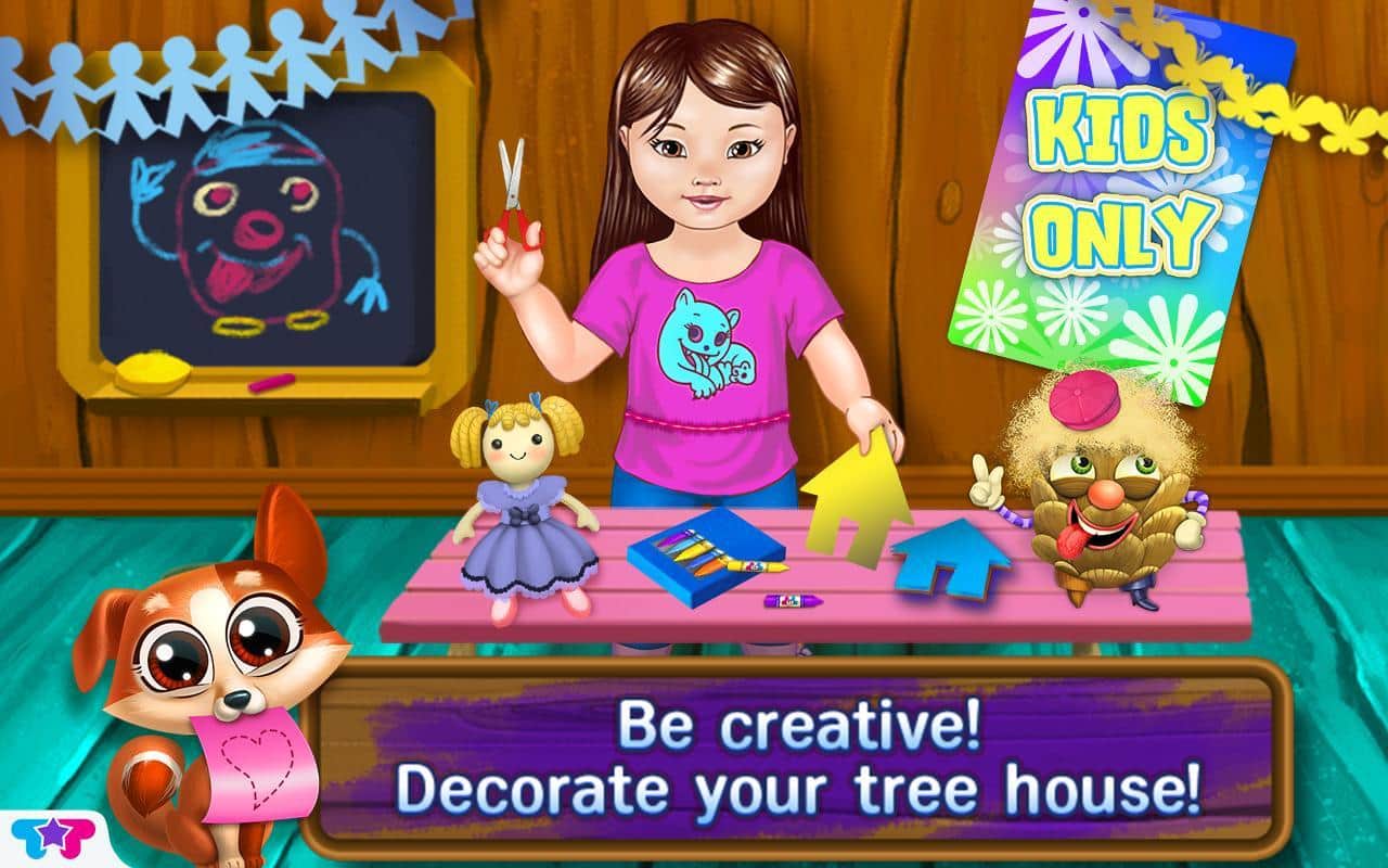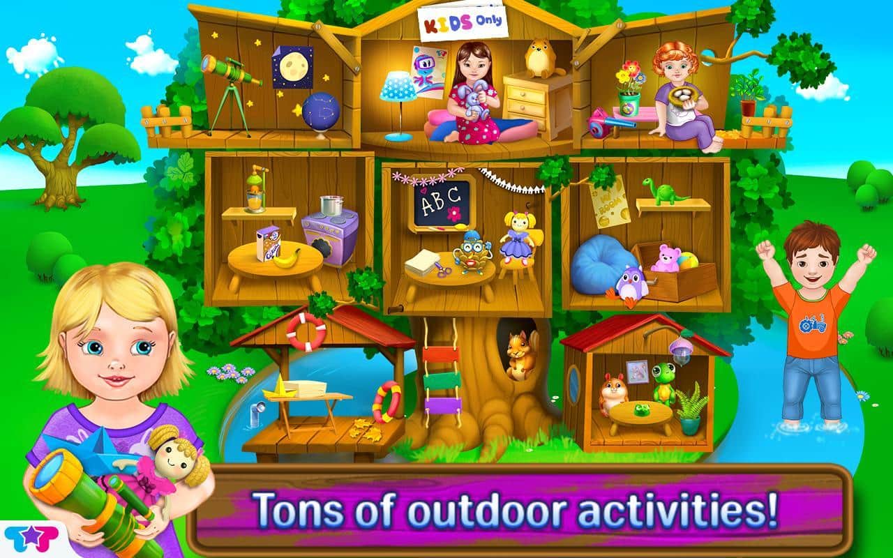 Шалаш на Дереве для Малышей / Baby Tree House - Присоединяйся к приключениям Эммы, Ким, Софии и Майклу в их классном шалаше на дереве. Отремонтируй чердак, играй в творческие игры в игровой комнате и завтракай с малышами на кухне. А ночью наблюдай за звездами на балконе, чтобы узнать больше о Большой Медведице, Созвездии Скорпиона и других созвездиях. Также заботься о животных и малышах! Укрывай малыша одеялом и корми его вкусной едой. Помогай птицам высиживать яйца на чердаке и животным найти дорогу домой, а также тебе придется выполнять много приятных заданий. Не пропусти эту развивающую игру для своего малыша и дай ею насладится.