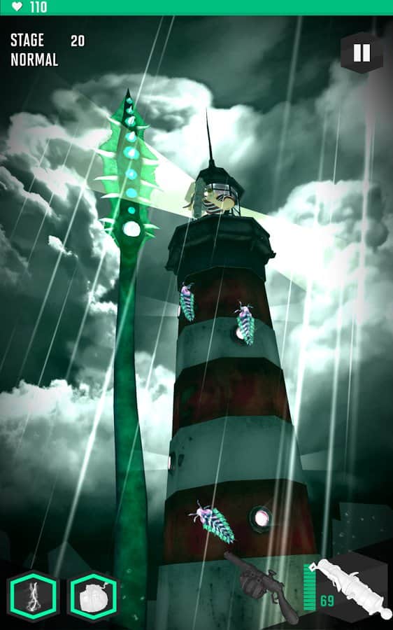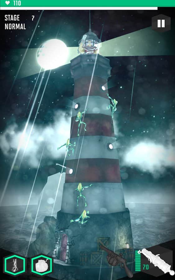 Shoggoth Rising - игра на аndroid, в которой вам предстоит сражаться с некими тварями с другого мира. Главный герой Нед потерпел кораблекрушение и оказался на маяке у неизвестного побережья, и теперь старается выжить. Чтобы защитить свою башню, ему в помощь придет огнестрельное оружие и оружие ближнего боя. Играйте со своими друзьями и попробуйте побить их рекорды в этой игре.