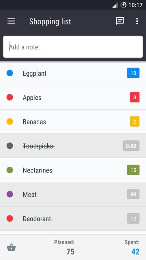 Shopping list - Це найпростіший список покупок який тільки може бути. Адже багато хто з нас часто пишуть на папері що їм потрібно купити, а потім втрачають її, і забувають щось важливе, в підсумку вам доводиться йти в супермаркет знову, і шукати те що ви забули. З цим додатком, все набагато простіше, вам всього лише потрібно створити свій список, і всього одним дотиком викреслювати ті продукти, які ви вже купили, таким чином ви не тільки зможете запам'ятати все що потрібно, але і легко отсортіруете куплену продукцію, від тієї що ще належить придбати.