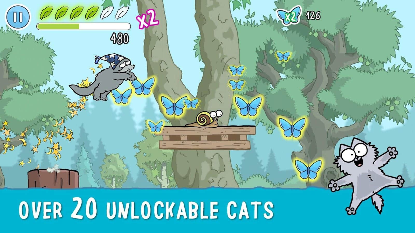 simon's Cat Dash - сюжет даного ранера розгортається навколо закоханої пари котиків, а точніше її сильної половини кота Саймона який поспішає на побачення зі своєю коханою, проте на шляху його чекає не мало перешкод як у вигляді різних пасток так і у вигляді собак, людей та інших персонажів. Крім цього по шляху необхідно збирати метеликів, щоб вразити закохану кішечку. Ігрова механіка виконана за класичною схемою, а ось графіка дійсно заслуговує уваги, всі локації і об'єкти намальовані в ручну і створюють неповторну атмосферу.