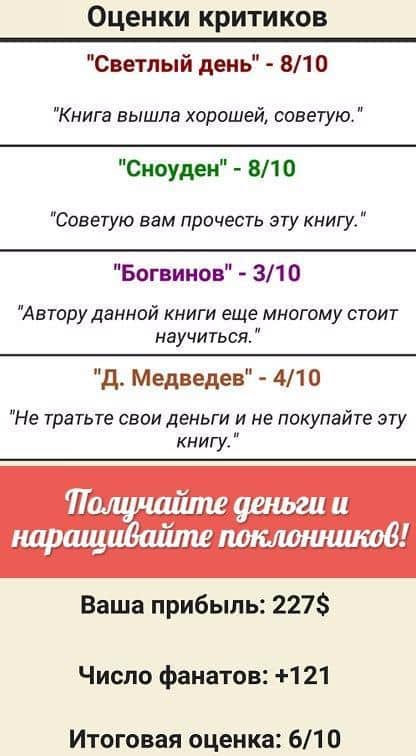 Симулятор Письменника - захоплююча гра, де кожен ваш крок визначає вашу долю у світі літератури та бізнесу. Тут ви зможете пройти шлях від початківця письменника до відомого магната та засновника власної літературної імперії. Вас чекають захоплюючі пригоди, зворушливі моменти та несподівані повороти подій.