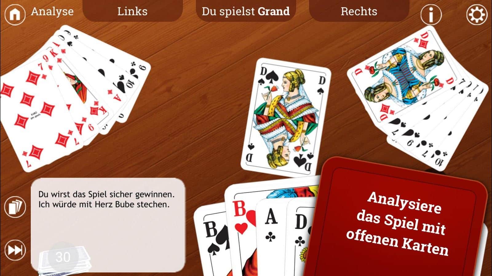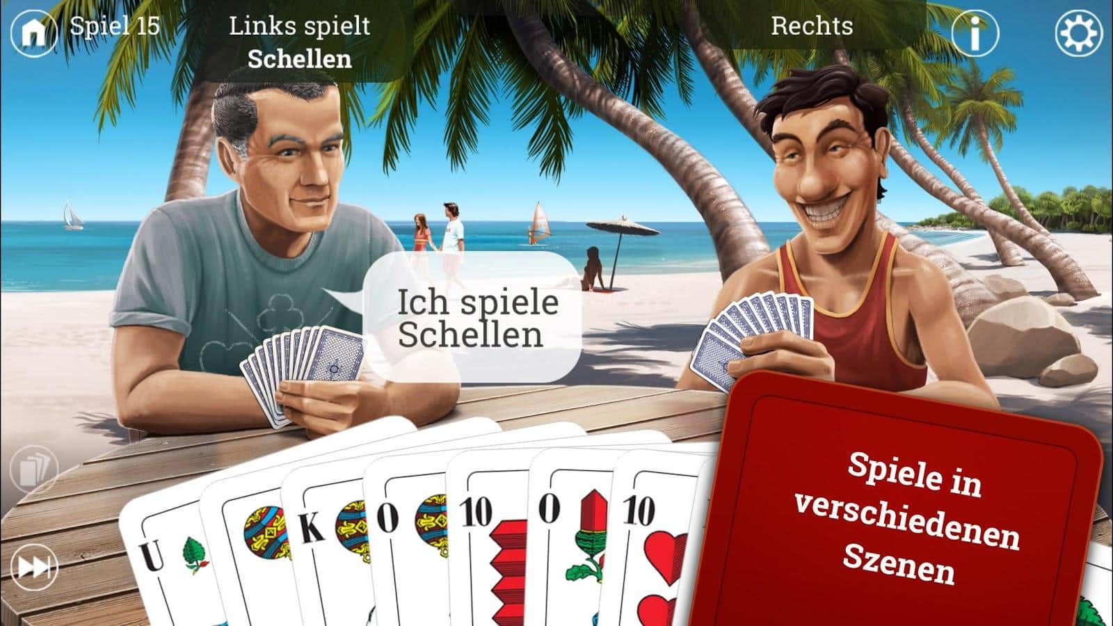Skat HD – захоплююча карткова гра на андроїд, де ви будете грати за всіма відому гру Скат. У цій грі ви будете грати проти досвідчених гравців, які не дадуть вам просто так перемогти їх. Грайте в будь-який час і в будь-якому місці і змагайтеся з друзями за кращі результати, а також кидайте їм виклик. У цій грі вашою головною задачею буде викидати непотрібні вам карти і намагатися зробити так, щоб ваші суперники залишилися з великою колодою карт. Тренуйтеся граючи проти комп'ютерних гравців або змагаються з реальними. Правила гри дуже прості і не займуть у вас багато часу для розуміння.