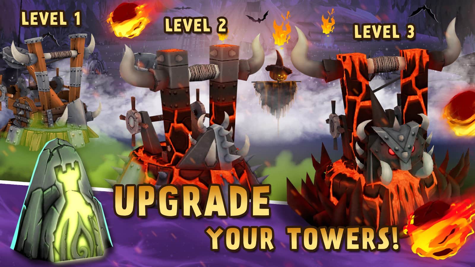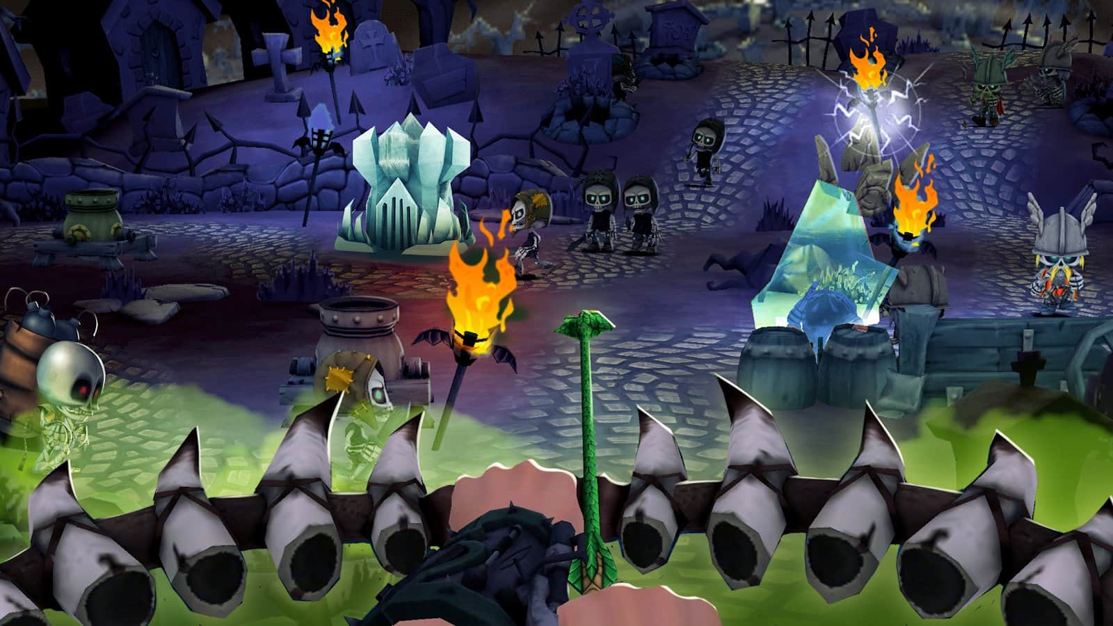 Skull Towers - Castle Defense - Досить цікава гра в якій змішалися відразу кілька жанрів ігор. У грі вас чекає як шутер від першої особи, так і захист вежі. Вам належить защитьтиь собсвенный місто темної ночі від нашестя скелетів. Ви зможете покращувати свою зброю, вивчати різні заклинання і ще багато чого.