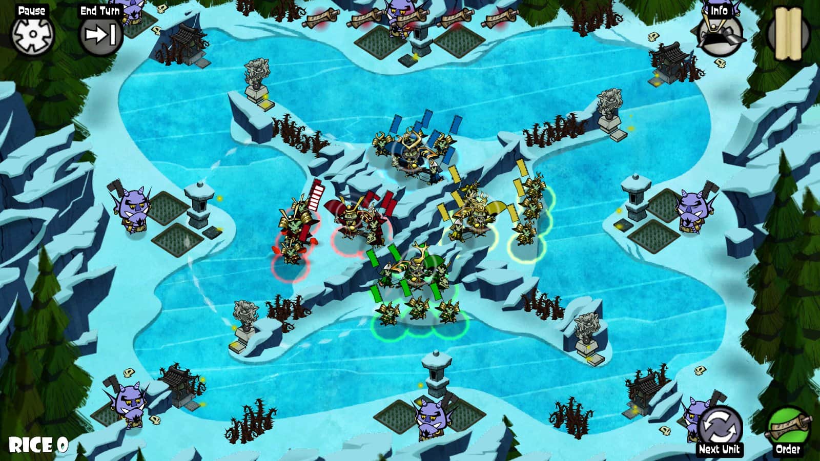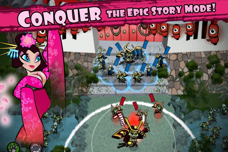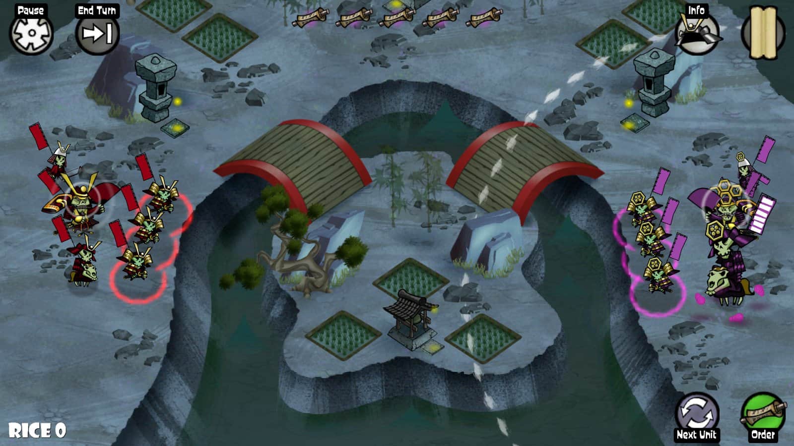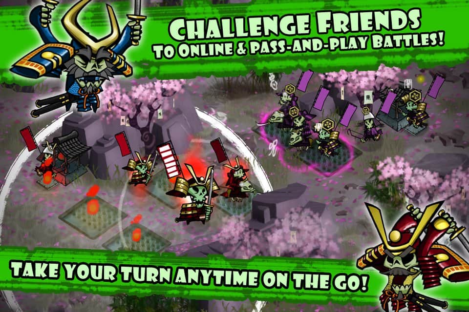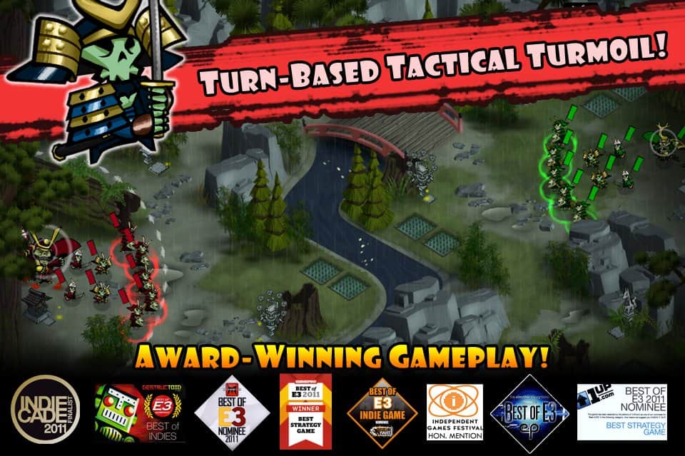 Skulls of the Shogun - захоплююча покрокова стратегя на Андроїд. Гра розповість про пригоди генерала Акамото в царстві мертвих. Виявляється, і там є свої правила! Вам потрібно відстояти чергу в зал суду, яким править самозванець-генерал Акамото. Тепер він намагається вбити справжнього генерала, щоб залишитися не розкритим. Так само не забувайте годувати своїх солдатів черепами ворогів. Від цього їх життя, атака, і захист збільшуються.