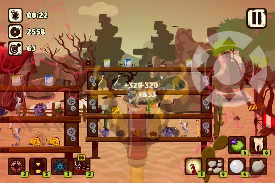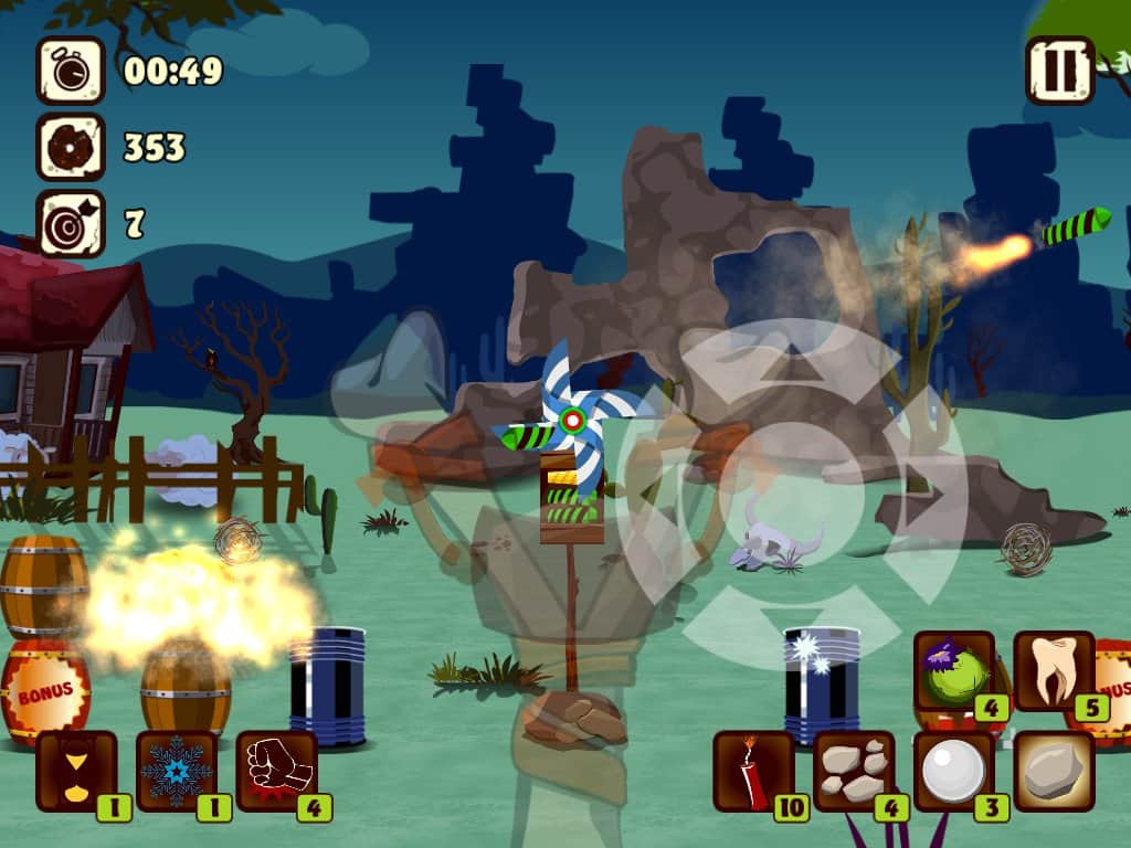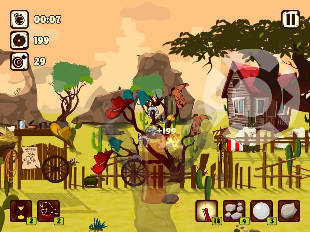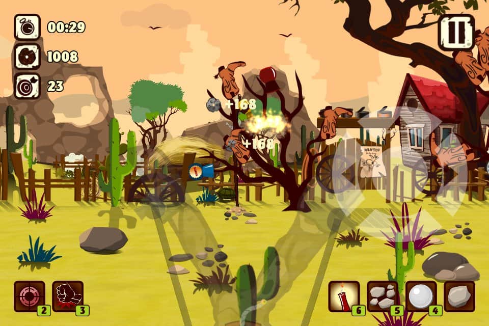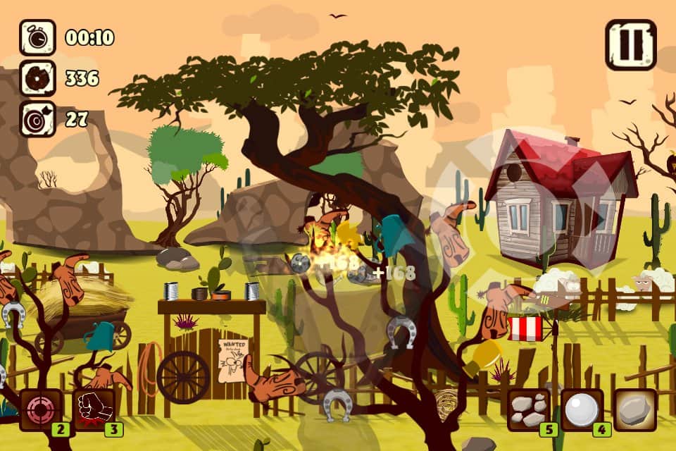 Slingshot range: Golden target – Дикий Захід завжди асоціювався з ковбоями і їх умінням швидко та влучно стріляти з револьвера. Ви будете здивовані що замість вогнепальної зброї вам дістанеться рогатка. З допомогою неї стріляємо по банкам, подковам, глечикам та іншим об'єктам. Можна навіть стріляти з рогатки запаленим динамітом. Кілька видів рогаток, різні бонуси та різноманітні рівні чекає свого ковбоя. Не забувайте, що треба враховувати силу вітру і кількість боєприпасів. Рогатку можна удосконалити і робити з неї по справжньому смертельне зброю. Для кращого ведення стрільби по цілях купуйте спеціальні атаки.