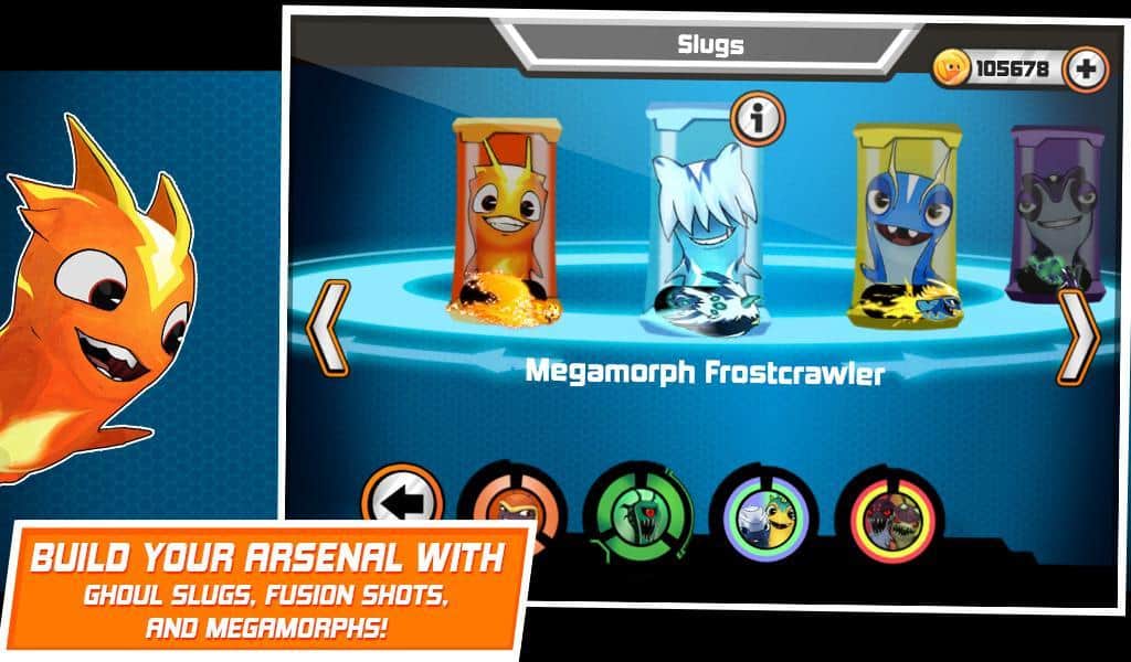 Slugterra: Slug it Out! - Стань кращим слагслингером всіх часів! Стань персонажем Елая Шейна на основі телесеріалу «Слагтерра» в цієї цікавою грі -головоломці. Збирай слагов, що мають свої унікальні здібності, щоб перетворити їх в грізну магічне зброю. Чим більше ти використовуєш їх, тим сильніше вони стають. Зібравши всіх десять слагов, ти зможеш використовувати їх для боротьби з полчищем лиходіїв і зупинити злого Доктора Блека. Для цього підбирай однакові плитки на ігровому полі, подпитывай слагов, заряджай бластер і дивися, як він атакує своїх ворогів. Також на вас чекає чудова аніме графіка і чудове музичне рішення.