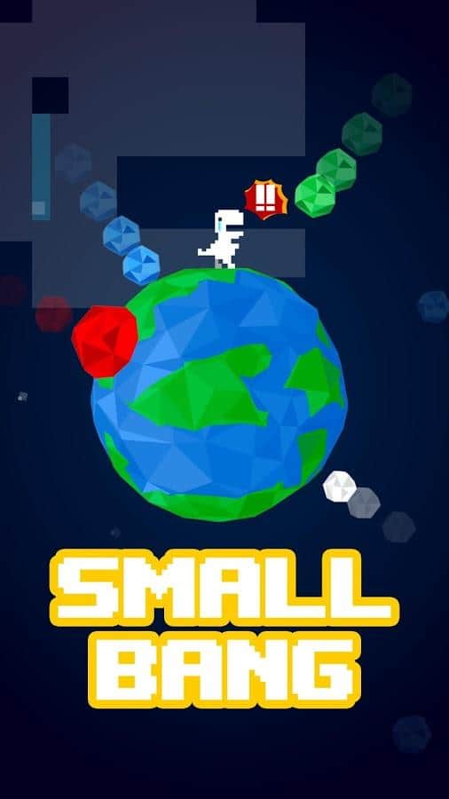 SMALL BANG - захоплюючий тайм-кілер від добре відомої студії 111%, відомої своїми проектами в даному жанрі. Відмінною рисою даного розробника є поєднання простого, але захоплюючого геймплея, оригінальної графіки і простоти освоєння гри. Так SMALL BANG яскравий приклад творчості даної студії, грати вам належить в ролі забавного динозавра який непристанно бігає по поверхні планети, але у нього на шляху постійно виникають різні перешкоди, так і зверху раз у раз норовить щось впасти, вам же необхідно уникати всіх цих негараздів і постаратися поставити черговий рекорд. SMALL BANG одна з тих ігор, що підкуповує своєю простотою і динамікою і дозволить вам приємно провести вільний час.