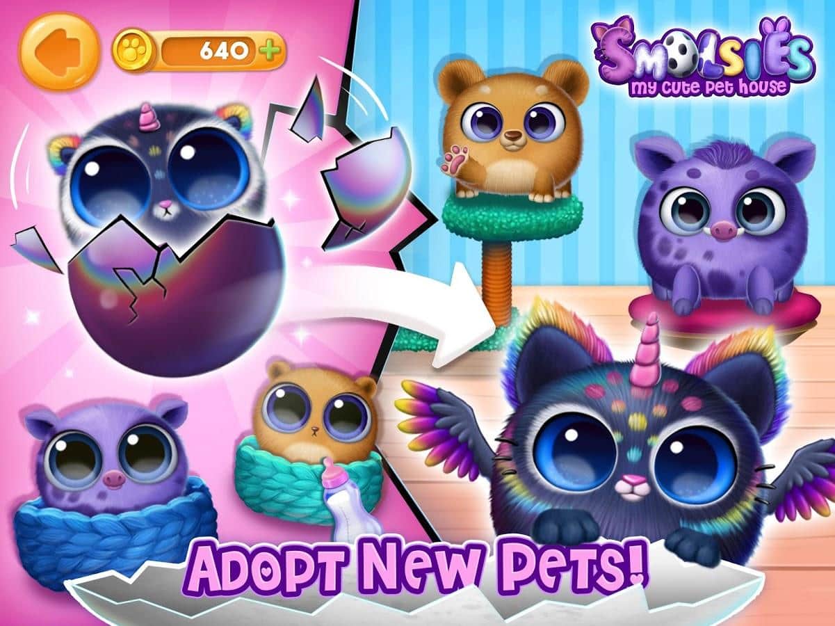 Smolsies - My Cute Pet House – відкрийте для себе захоплюючий і неповторний світ Смолси. У цій грі ви познайомитеся з милими Смолси які будуть жити у вас в телефоні. Чарівні пухнасті звірятка у вигляді ведмедів, милих кабанів і величних котів-єдинорогів. Велика родина Смолси потребує вашої допомоги для будівництва будинку. Дослідіть різні локації гри, збирати нові іграшки та різні музичні інструменти і спостерігайте за тим, як веселяться ваші вихованці. Вылупляйте маленьких вихованців з несподіваних яєць, об'єднуйте вихованців і отримуйте нові види, а також зберіть свою неповторну колекцію милих Смолси.
