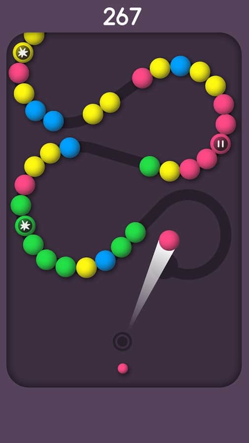Snake Balls – захоплююча гра на андроїд, дуже нагадує Зума але з мінімалістичною графікою. У цій грі вашою головною задачею буде стріляти різнобарвними кульками в ланцюжок з них і складати по три і більше кульок одного кольору в ряд. Підривайте ланцюжки з однакових куль і тим самим укорачивайте змійку, яка прагне до чорної діри символізує кінець рівня. Прицеливайтесь і стріляйте в потрібному вам напрямку і намагайтеся зробити це якомога точніше, інакше провал вам загрожує програшем. Тренуйте свою реакцію і швидкість пальців і добийтеся відмінних результатів. З кожним новим рівнем складність гри буде збільшуватися.