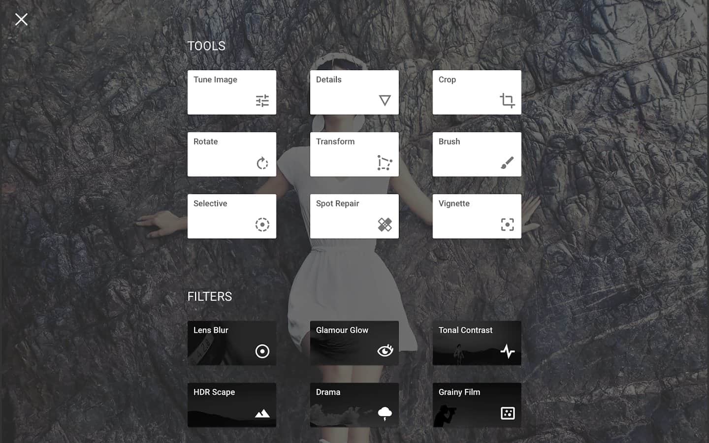 Snapseed – Для професійної обробки фотографій більше не потрібен персональний комп'ютер. Тепер все це можна зробити з допомогою цього простого, але в теж час геніального програми на android. Ви зможете змінювати всі аспекти ваших фото, починаючи від яскравості і контрасту, і закінчуючи всілякими фільтрами, і змінами частин фотографії.