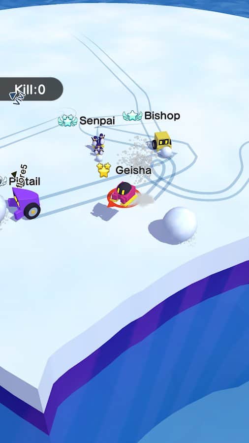 Snowball.io – захоплююча гра на андроїд, де ви будете катати сніжки. У цій грі ви зі своїми суперниками опинитеся на невеликому засніженому острові і вашим завданням буде катати сніжки і з допомогою них збивати ворогів. Створюйте гігантські сніжки і не залиште суперникам жодного шансу на перемогу. Створюйте свої сніжки як можна швидше інакше у суперників з'явиться шанс зіштовхнути вас з острова швидше. З кожним новим рівнем острів, на якому ви перебуваєте буде ставати все менше і це неминуче зіштовхне вас з ворогами.