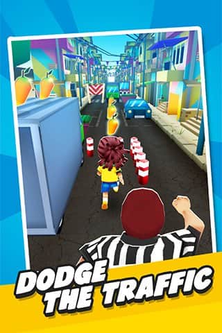 Football Rush: Running Kid – керуйте молодим футболістом і ведіть його вперед тікаючи від судді. У цій грі ви будете керувати футболістом який біжить по жвавих вулицях міста і допомагайте йому обходити всі перешкоди на шляху. У потрібний момент торкайтеся екрану свого телефону або планшета і допомагайте футболісту перестрибувати через машини, обходити перешкоди і прослизати через бар'єри. По дорозі не забувайте збирати манго і використовуйте їх для того, щоб отримати численні посилення у вигляді планера і магніту. Змагайтеся з друзями за кращі результати і піднімайтеся всі вище в таблиці лідерів.
