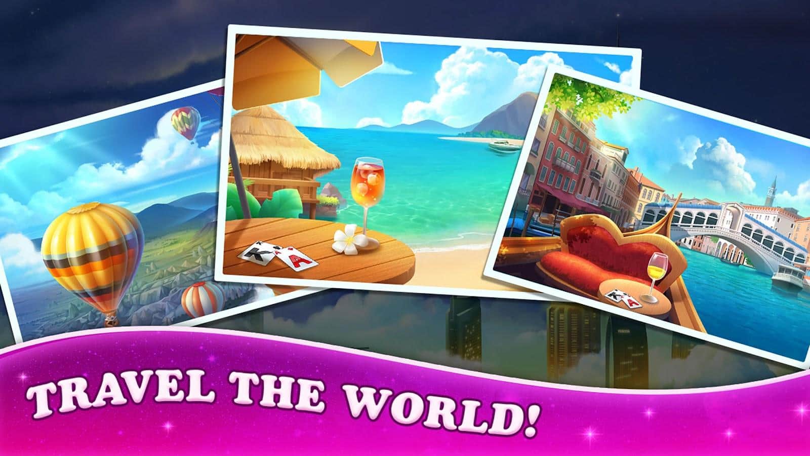 Подорож по картковому світу починається! Безліч рівнів з класичною грою пасьянс, яка завжди манить картоманов. Загадкові комбінації, чарівні стратегії, складність і швидкість. Вистачить просто сидіти вдома, коли ви можете заробляти з допомогою карток і відкривати нові межі своєї свідомості, досліджуючи неймовірні країни! Однотипне проведення часу в грі нагнітає і набридає, тому спробуйте використовувати додаткові можливості у вигляді чарівних прискорювачів, перемоги і нагороди не змусять себе довго чекати.