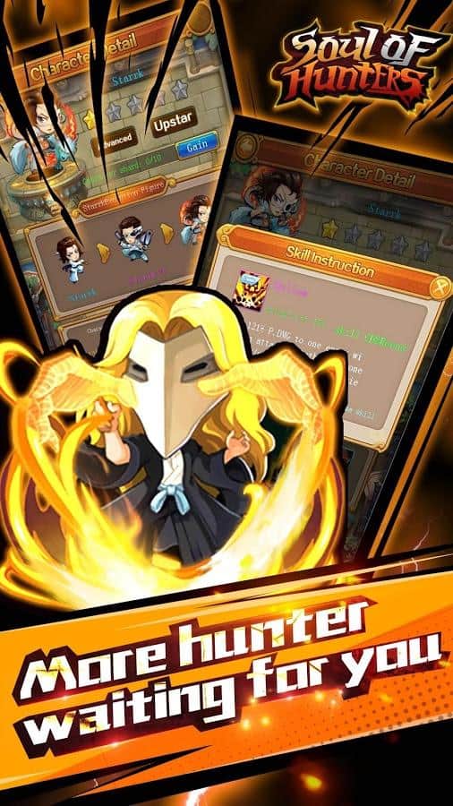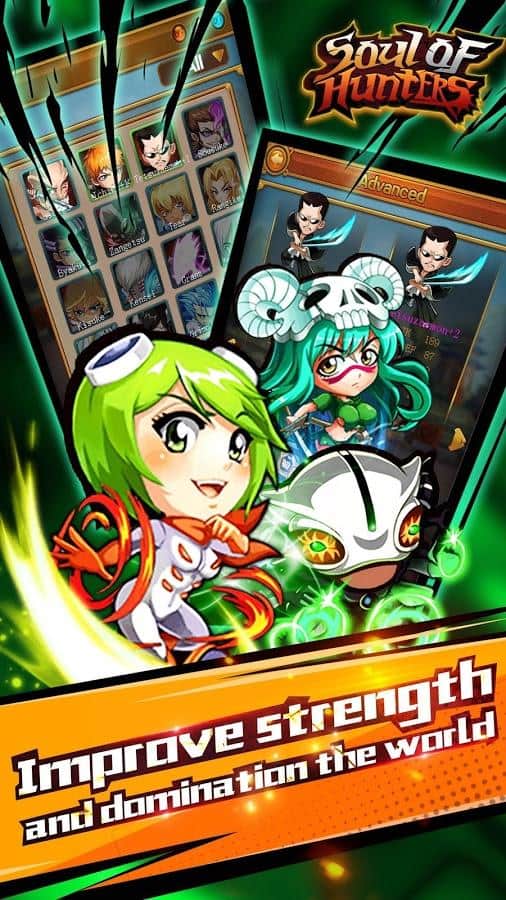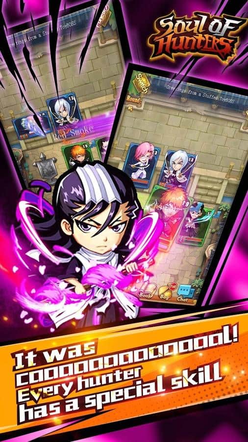 Soul of Hunters – карткова гра на андроїд, створена за сюжетом знаменитого аніме «Бліч». У цій грі ви зберете непереможну команду мисливців і вступите в сутичку з темними силами і монстрами. Беріть участь в смертельних поєдинках і перемагайте ворогів. У грі кожен персонаж володіє своїми унікальними навичками і здібностями, перевірте їх в боях і отримуйте в якості нагороди безцінний досвід. Розвивайте героїв і поповнюйте свою команду новими. Проходьте захоплюючі місії і виконуйте всі завдання запропоновані грою. Зберіть свою неповторну колекцію карт і бийтеся з друзями на одній арені.