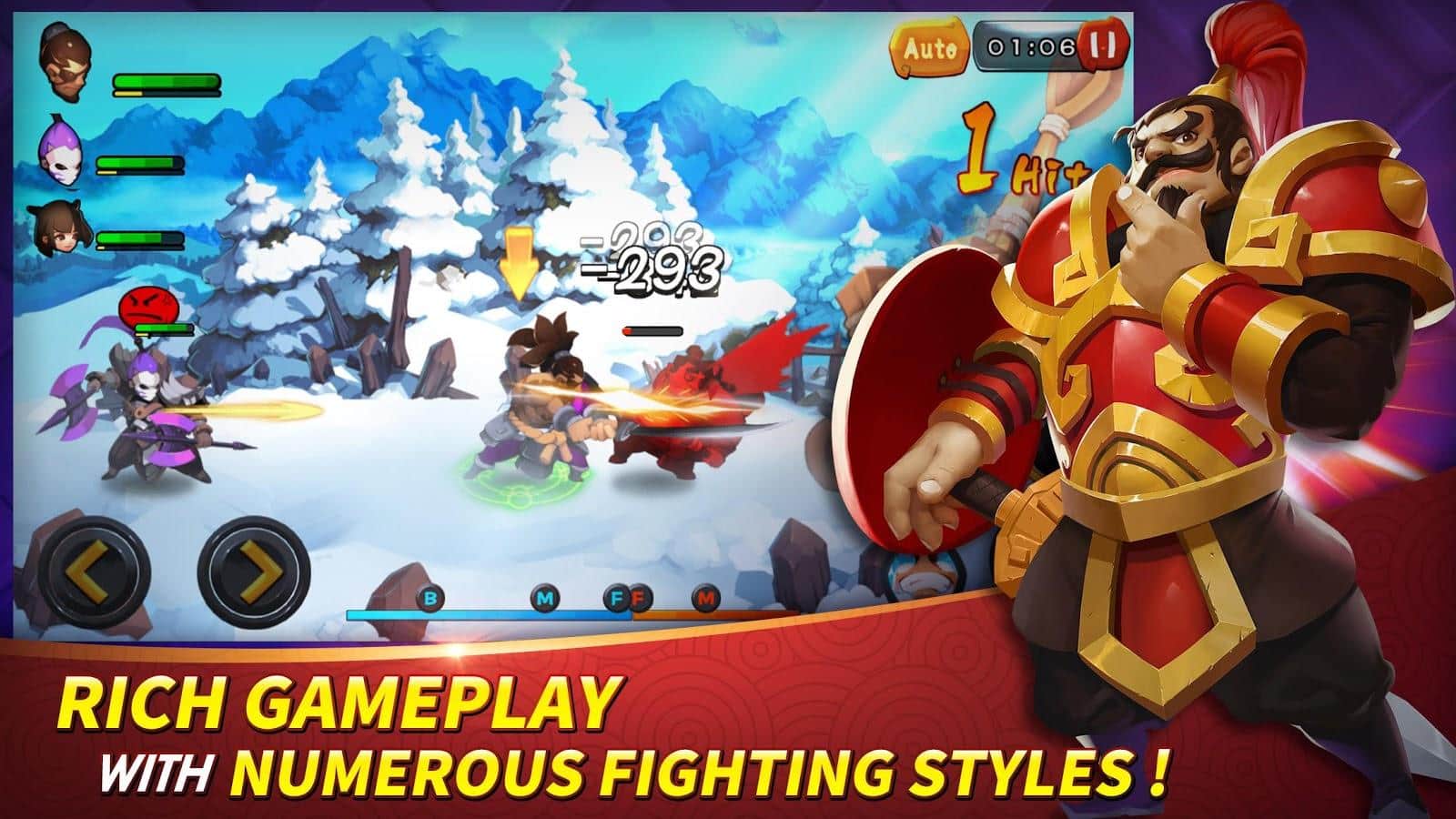 Soul Warriors – зберіть свій загін героїв в цій грі і боріться проти сил зла. Ця гра перенесе вас в епоху Троєцарствія, де ви будете подорожувати по різних світах і боротися з численними ворогами. Зберіть свій загін героїв, який буде складатися з трьох легендарних воїнів, кожен з них буде володіти унікальними уміннями. Кидайте виклик сильним супротивникам і застосовуйте в бою руйнівні здібності героїв і комбо удари. Майстерно керуйте воїнами і розвивайте їх вміння і силу по ходу гри. Знищити всіх супротивників на своєму шляху і пройдіть всі захоплюючі місії.