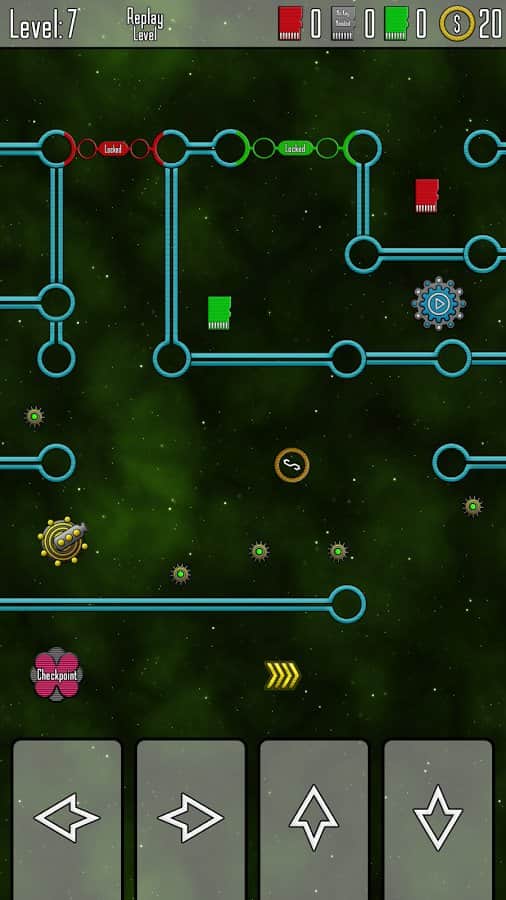 Spaceship Rotation - аркадна головоломка в якій вам належить взяти під своє управління цей космічний шатл і пройти більш кілька десятків найскладніших рівнів. Кожна з локацій представляє з себе складний лабіринт, наповнений як пастками так і різними бонусами та призами. Складність полягає в тому що торкатися стін не можна, при цьому корабель рухається без зупинки до тих пір, поки ви його не зміните напрямок руху або ж він не зіткнеться з перешкодою. Проводячи шатл через лабіринт ви будете збирати різні бонуси, які потім зможете використовувати для поліпшення свого корабля або ж на купівлю нового. Проходження Spaceship Rotation зажадає від вас не тільки швидкості реакції, але ще витримки і уважності.
