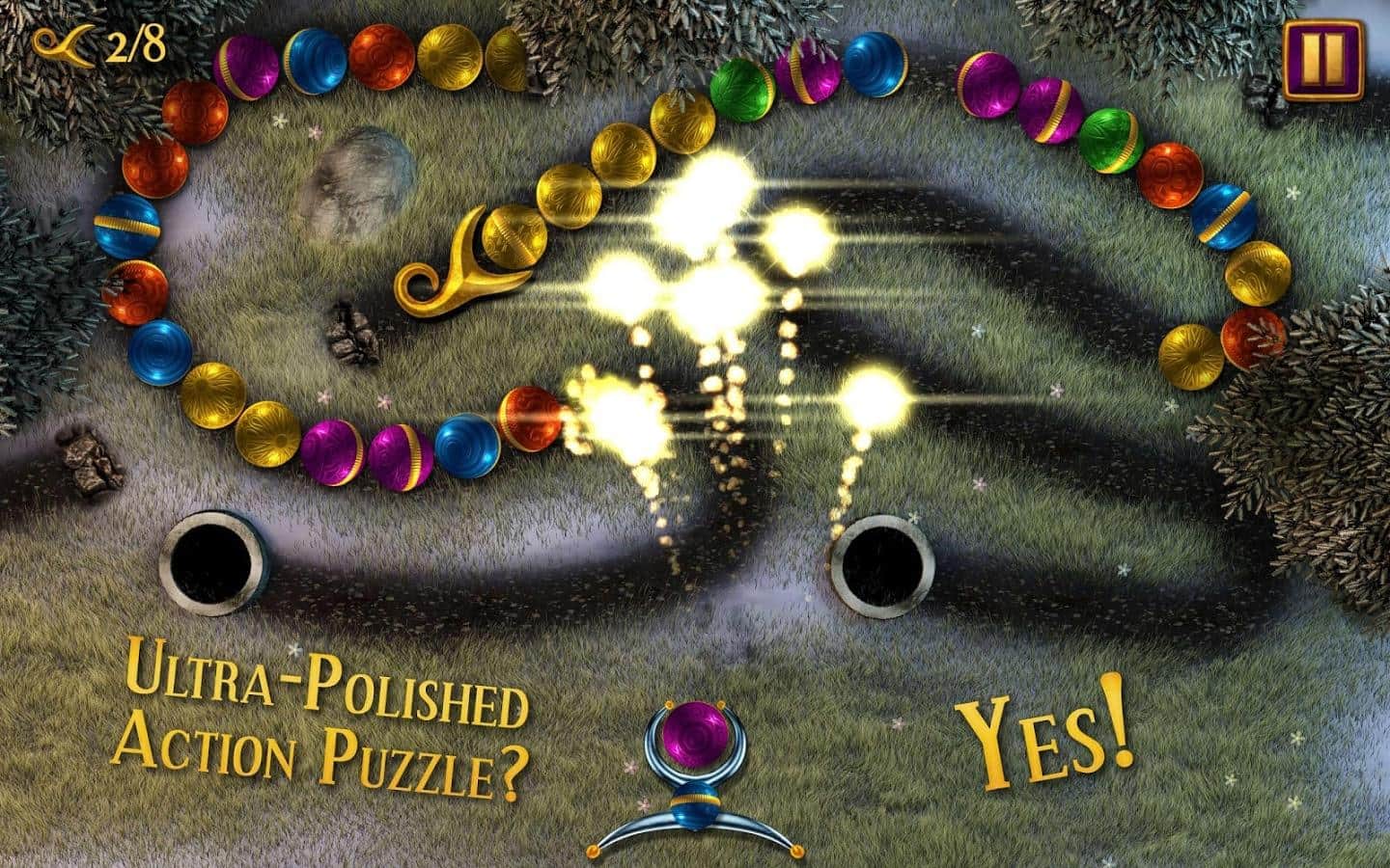 Sparkle Unleashed-відмінний зуманойд нарешті дістався до андроїд платформу. Як завжди в іграх даного типу, вам потрібно стріляти з «рогатки» в повзе змійку з куль, при цьому групуючи їх разом. Якщо зберіть велику ланцюжок, то вилетить бонус, який допоможе вам у проходженні рівня. Всього бонусів близько вісімнадцяти штук. Гра має красиві ефекти, тому ви пограєте з задоволенням, а може навіть застрягнете не на одну годину.
