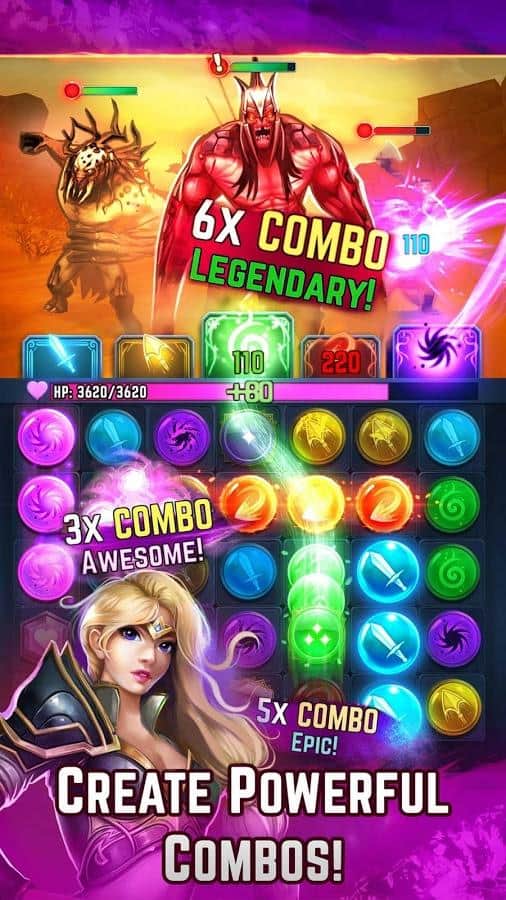 Spellblade: Match-3 Puzzle RPG – захоплююча гра з жанру три в ряд на андроїд, де ви будете складати ряди з трьох і більше каменів і перемагати сильних ворогів. Пориньте з головою в фантастичний світ і збирайте епічні предмети, які вам будуть допомагати перемагати супротивників. Розблокуйте нові для себе локації, в кожній з яких вас будуть чекати небезпечні вороги. Складайте по три і більше предмета в ряд і наносите руйнівні атаки ворога, при цьому отримуючи нагороди у вигляді нових навичок. У цій грі ви будете виступати в ролі паладина, рейнджера, чарівника або воїна на вибір.