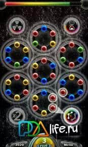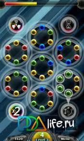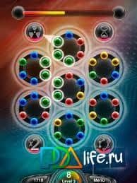 Spinballs для Bada заставит вас двигать не только пальчиками очень быстро, но и включить логическое мышление на полную катушку! Перед вами 7 кругов с 6 разноцветными шариками на каждом. Ваша задача - крутить круг в любую сторону (по часовой или против часовой стрелки) так, чтобы выстроить как можно длиннее цепочку из шариков одного цвета. При этом не забывайте про тиканье часиков - время бежит! Чтобы облегчить свою победу, имеются 4 вида подсказки-помощи: