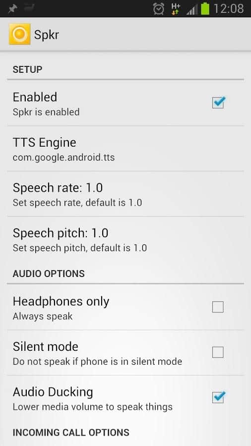 В налаштуваннях ви зможете відкоригувати цікавлять вас параметри: вибрати темп і швидкість мовлення, активувати вимову контакту тільки при підключених навушниках, або вимкнути його, якщо включений безшумний режим.