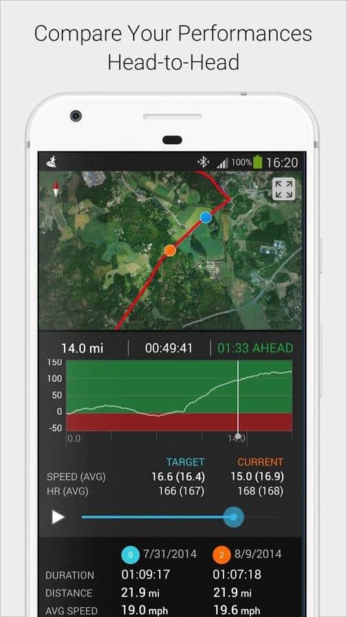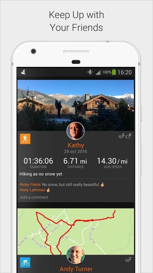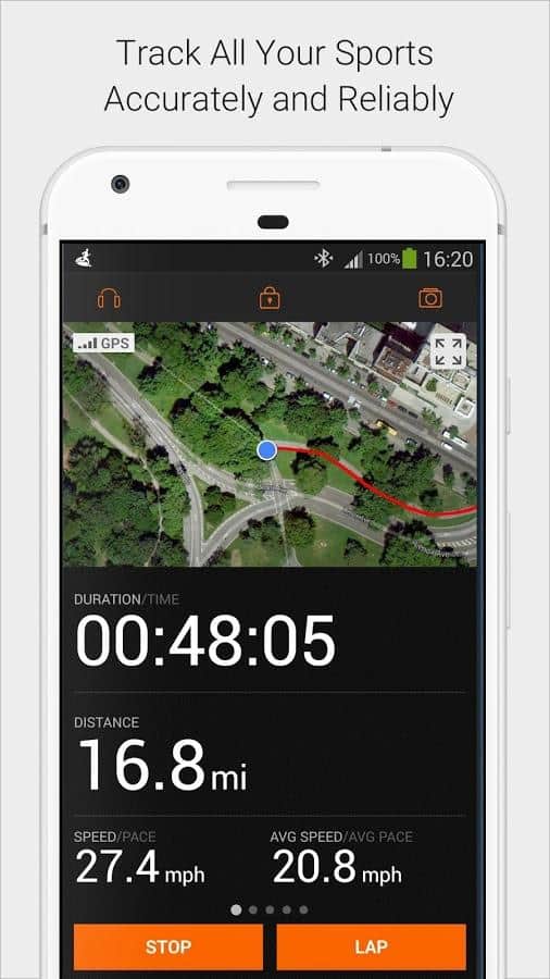 - Полная детализация всех сведений: от количества сожжённых калорий до средней скорости и времени прохождения участка пути.