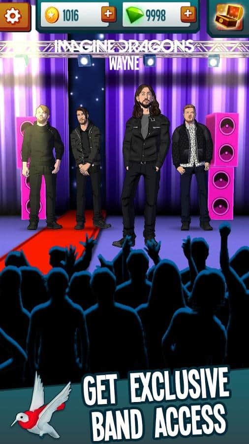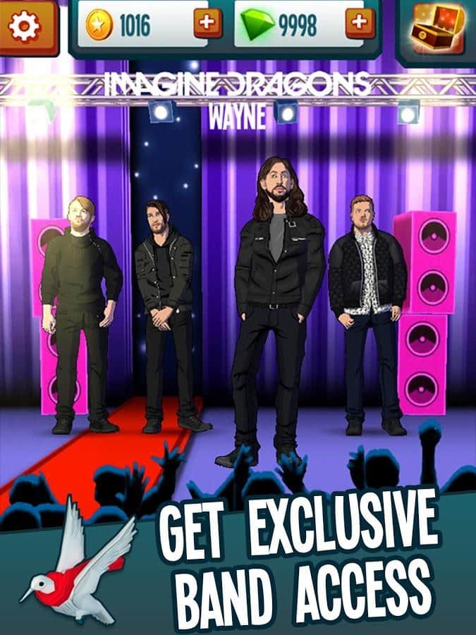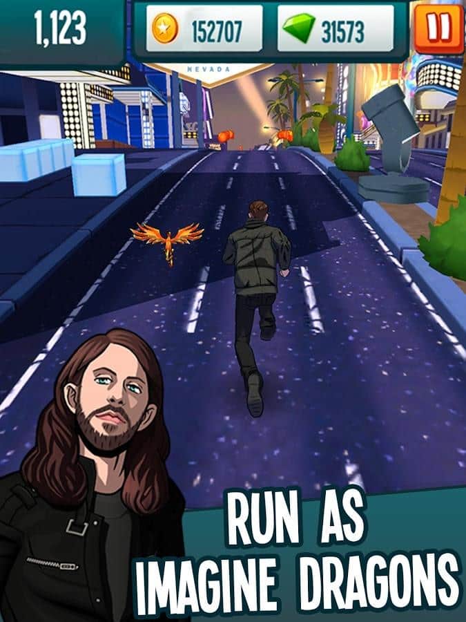 Stage Rush - Imagine Dragons – раннер для андроїд, де ви будете грати за кожного члена популярної групи Imagine Dragons. Ця гра була створена для того, щоб допомогти хворим на рак людей. Встановлюйте цю гру і бігайте по вулицях великих міст, таких як Лас-Вегас і Париж під відомі хіти цих виконавців. У цій грі для вас з'явитися можливість дізнатися багато нового та цікавого про цю групу, побачити нові фотографії з їх зображенням і задати питання. Гра порадує вас оригінальними рівнями з екстремальними природними перешкодами можливістю одягнути свого героя в різноманітні костюми і доповнити образ аксесуарами. По дорозі збирайте спеціальні листи і відкрийте бонусні рівні.